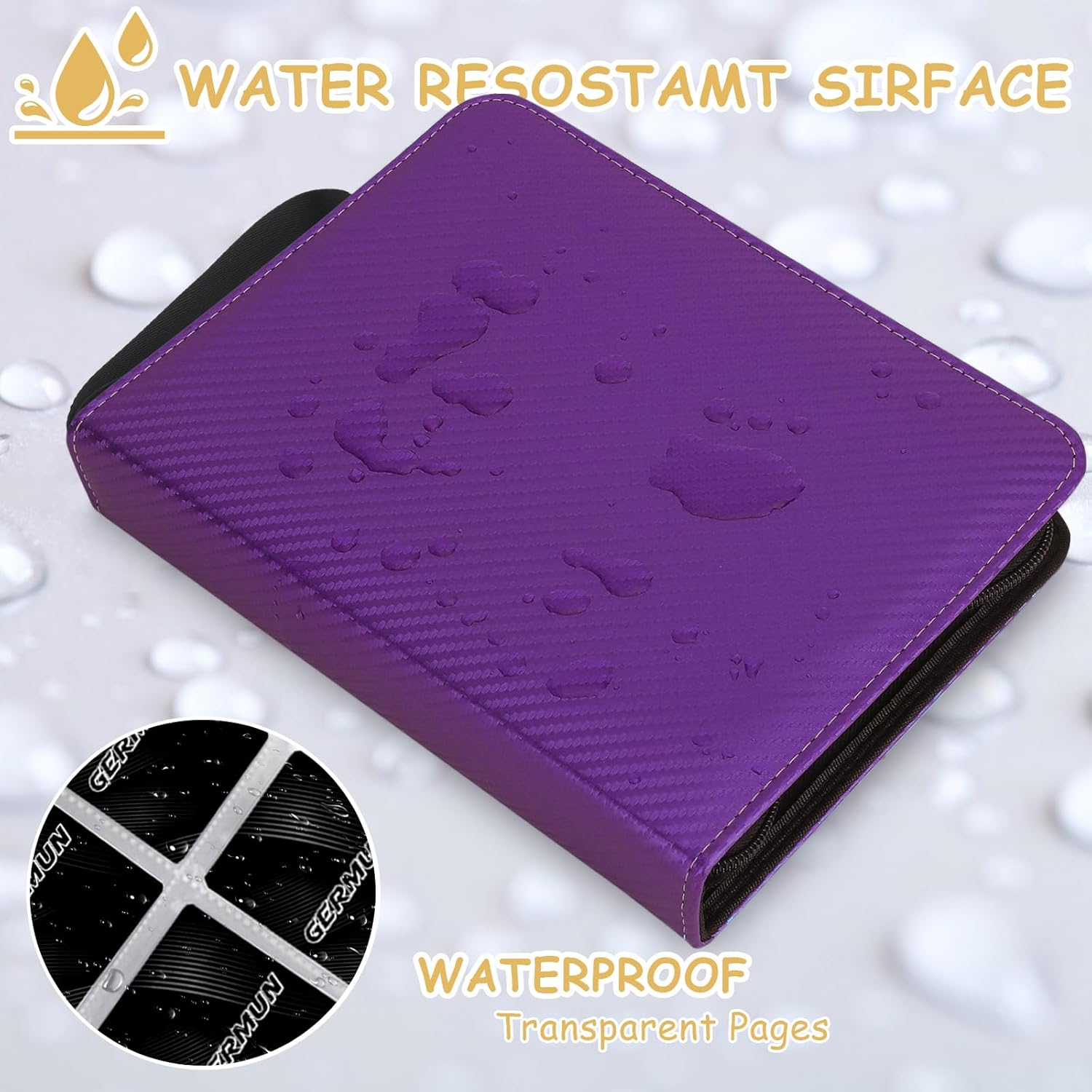 4 Pocket Card Binder, Premium Zip Trading Card Binder, 400 Double Sided Pocket PU Card Collection Binder, Collector Card Album, Card Folder for MTG, TCG, Sports Cards, Game Cards (Purple)