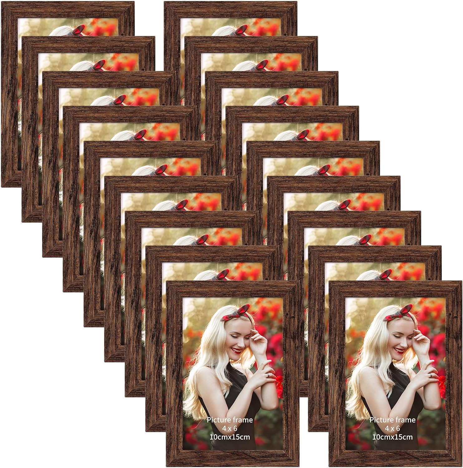 PETAFLOP Wooden Bulk 4x6 Picture Frame Set of 18, Rustic Brown Photo Frames Fits 4 by 6 for Wall or Tabletop Display