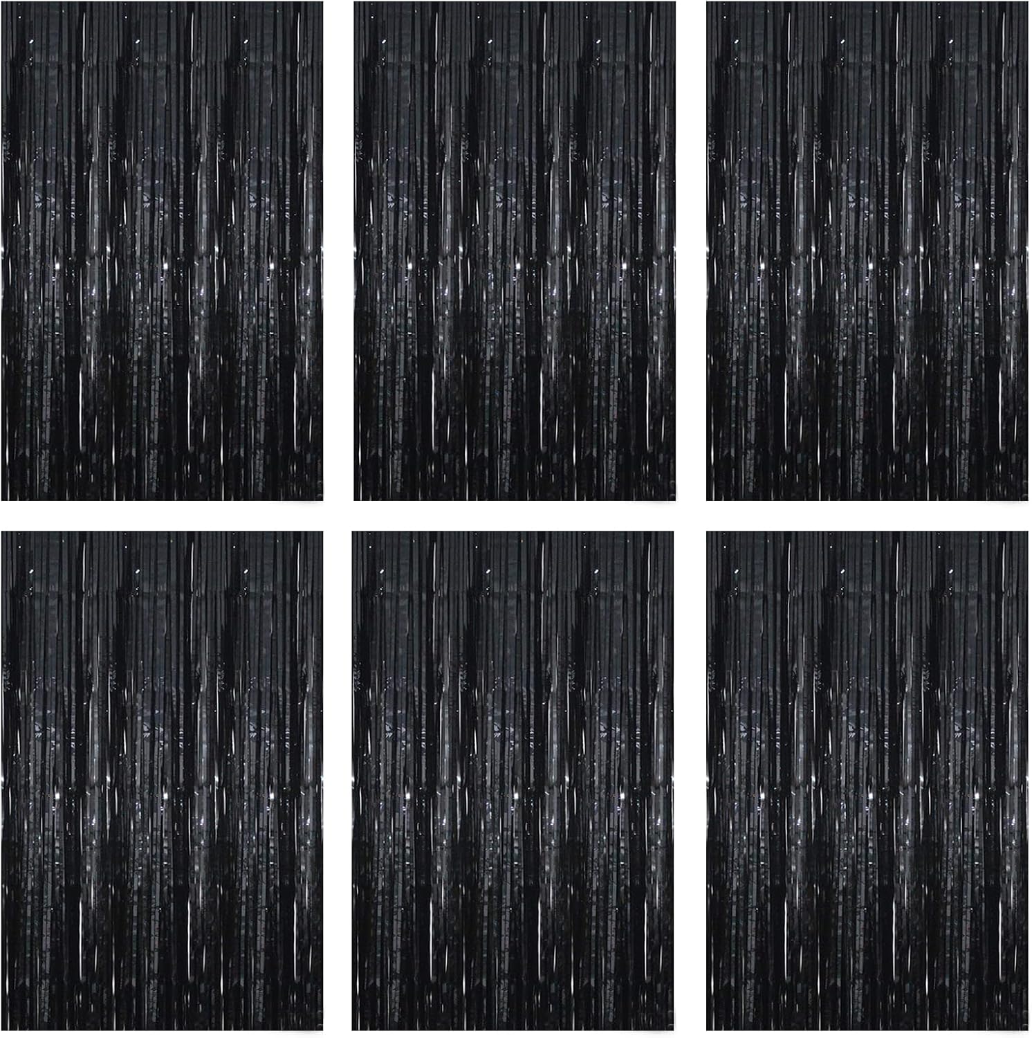 Black Foil Fringe Curtain 3.3×8.3FT 6 Packs, Metallic Tinsel Curtains Party Streamers for Birthday Graduation Baby Shower Decoration (6pcs,3.3FT×8.3FT, Black)
