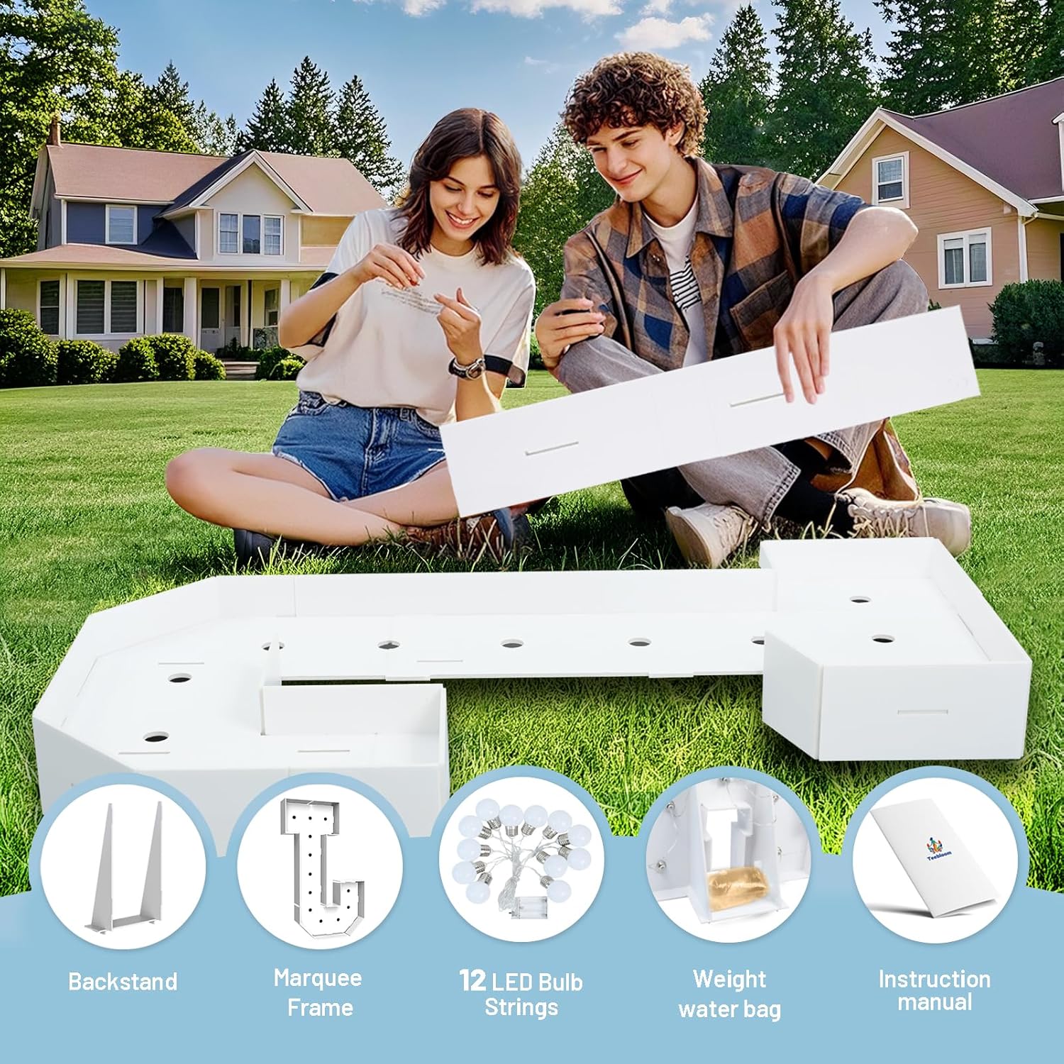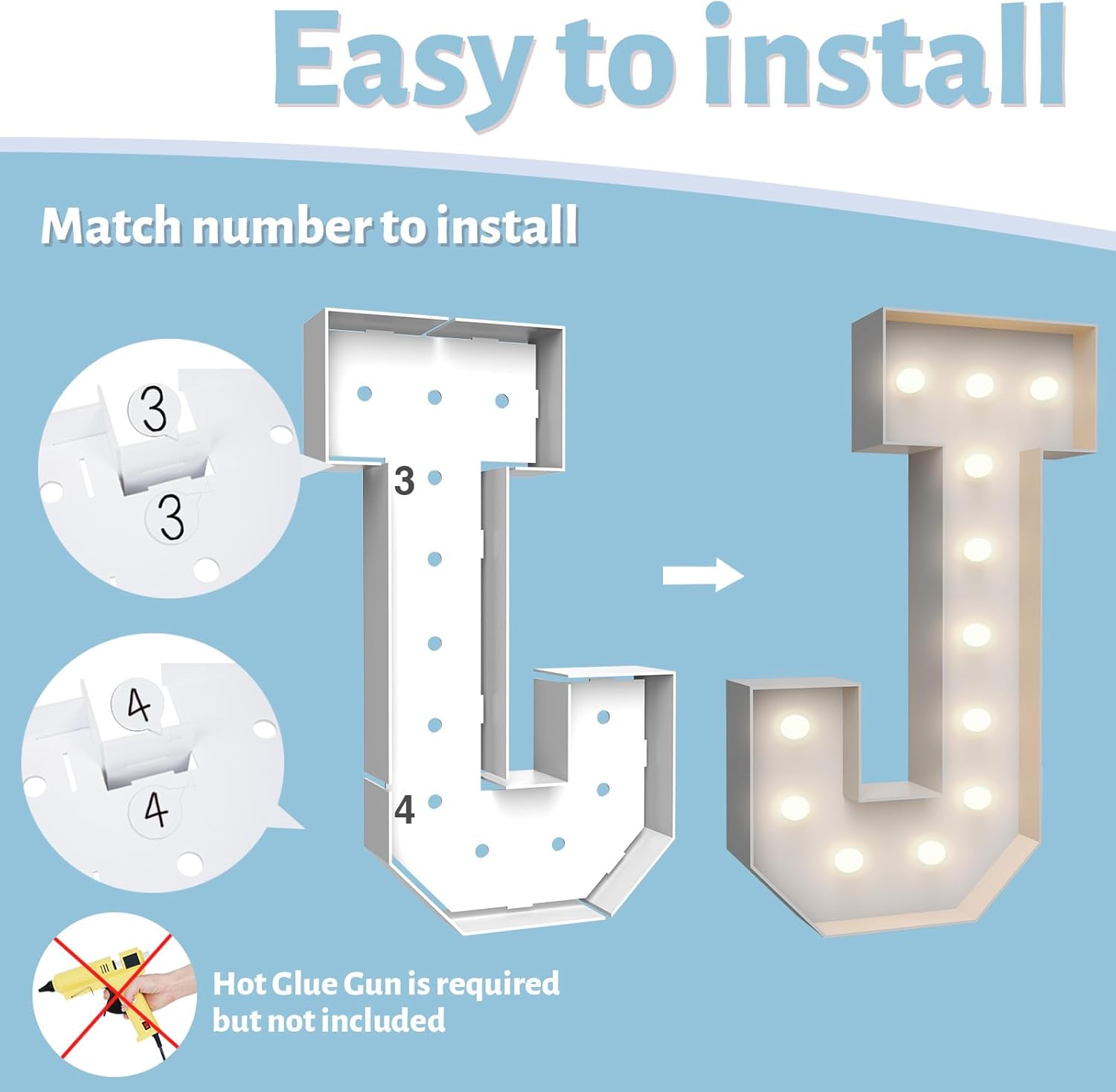 4FT Marquee Light Up Letters J,Party Decoration Large Marquee Light Up Letters with Weighted Water Bag,Pre-cut Foam Board Set Can Be Used for Birthdays,Weddings,Baby Anniversaries