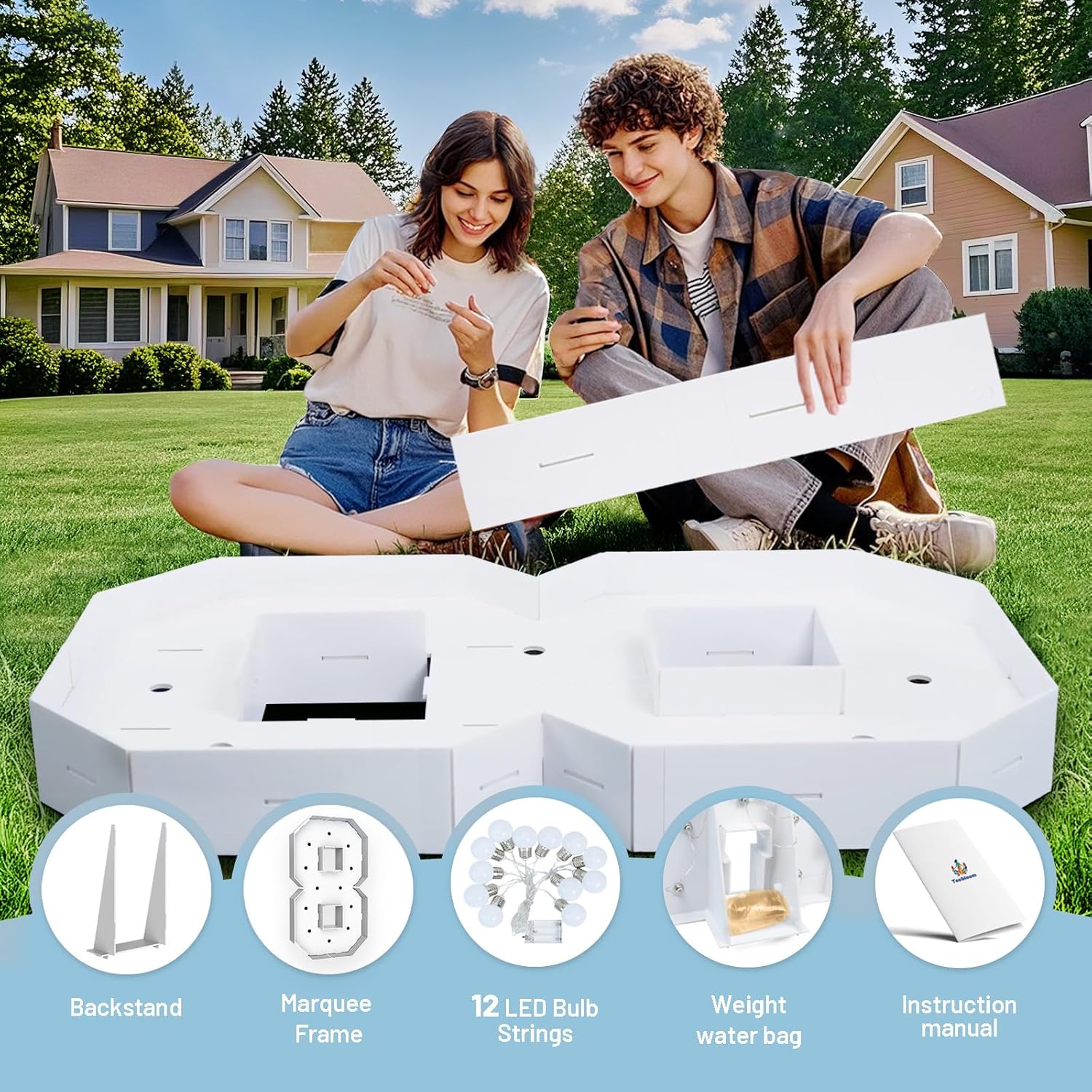 4FT Marquee Light Up Numbers 8,Party Decoration Large Marquee Light Up Letters with Weighted Water Bag,Pre-cut Foam Board Set Can Be Used for Birthdays,Weddings,Baby Anniversaries