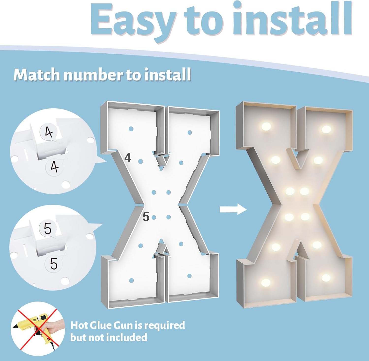 - ASSEMBLY REQUIRED: The marquee numbers need to be assembly with hot glue gun(not included in the package) Assemble it in advance will make your party amazing and fantastic