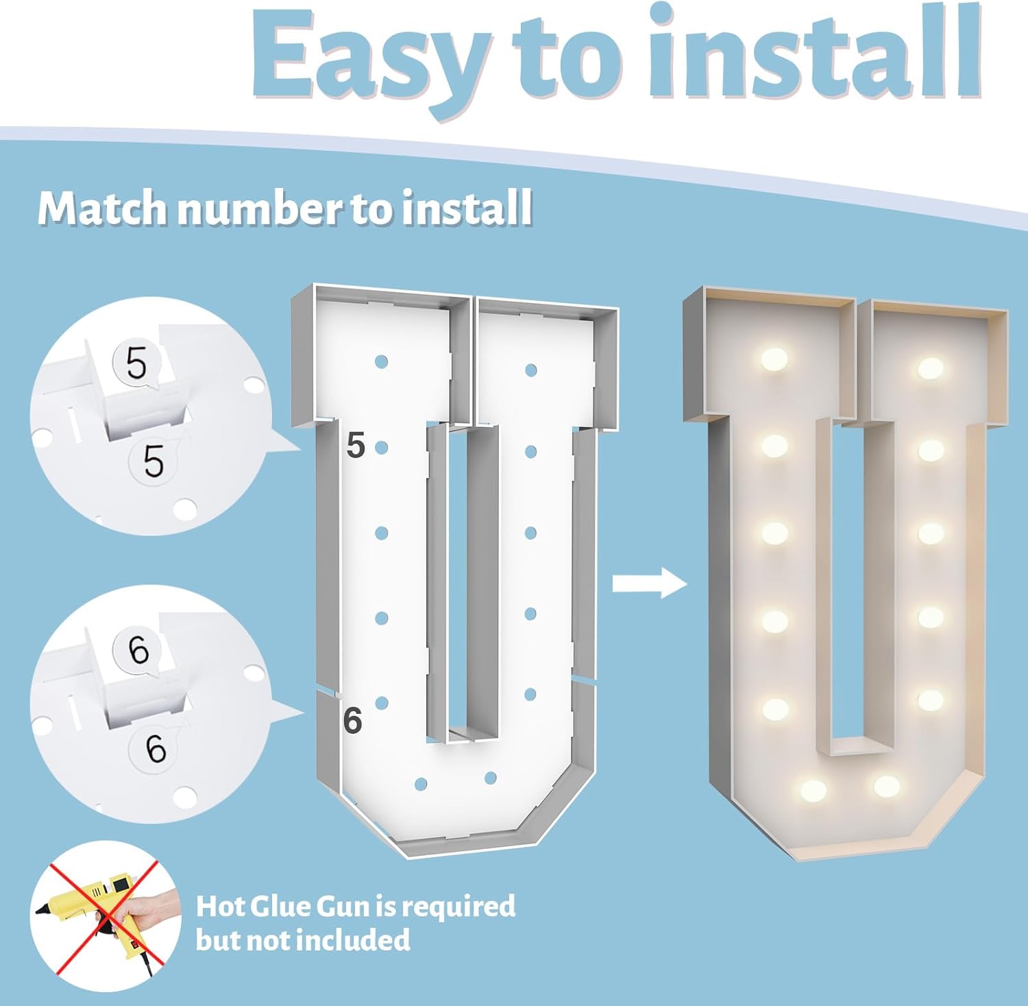 4FT Marquee Light Up Letters U,Party Decoration Large Marquee Light Up Letters with Weighted Water Bag,Pre-cut Foam Board Set Can Be Used for Birthdays,Weddings,Baby Anniversaries