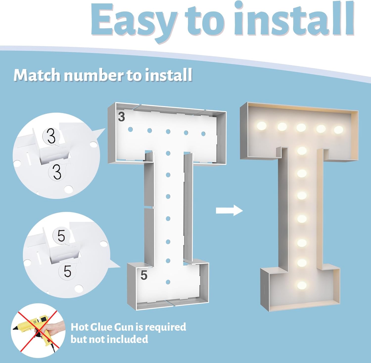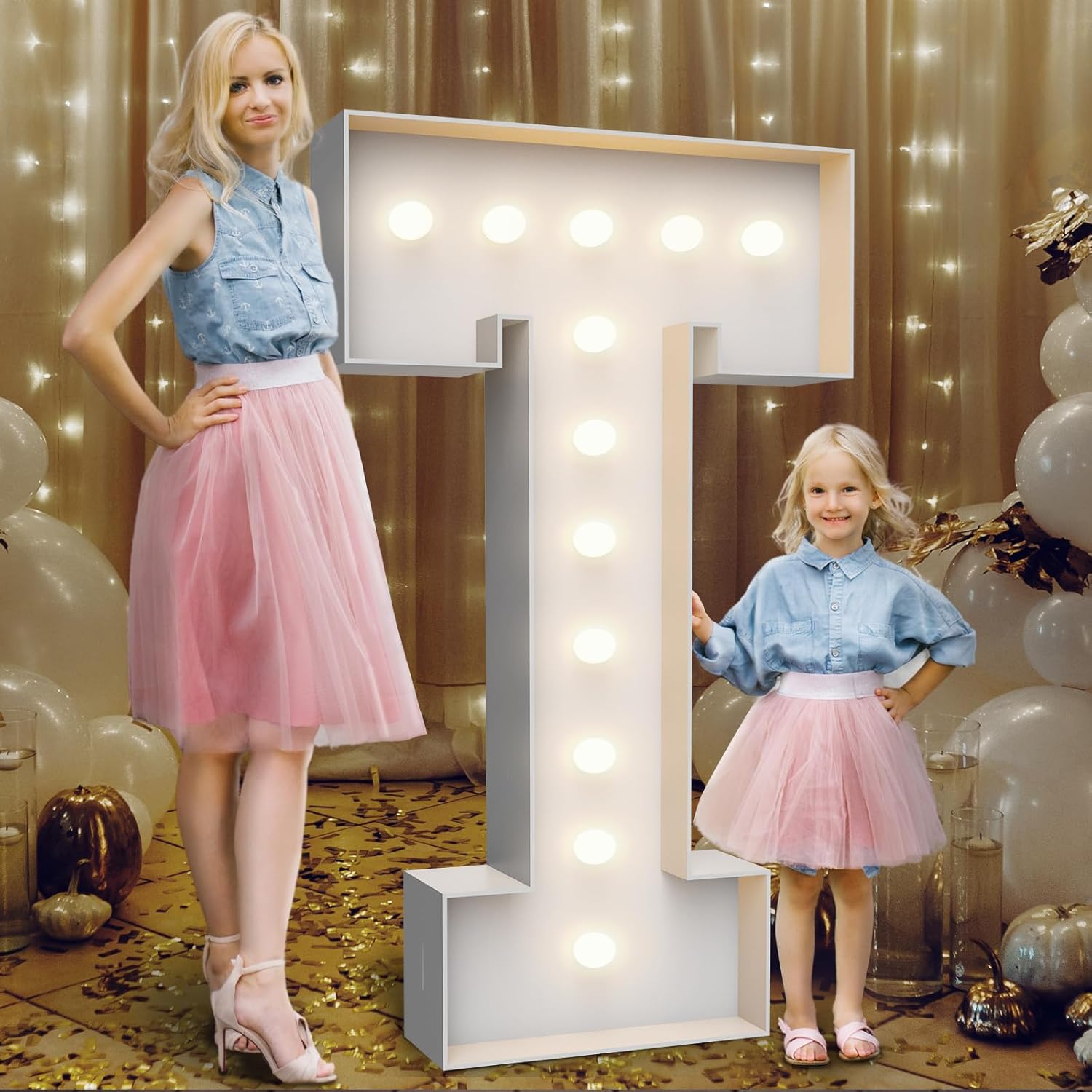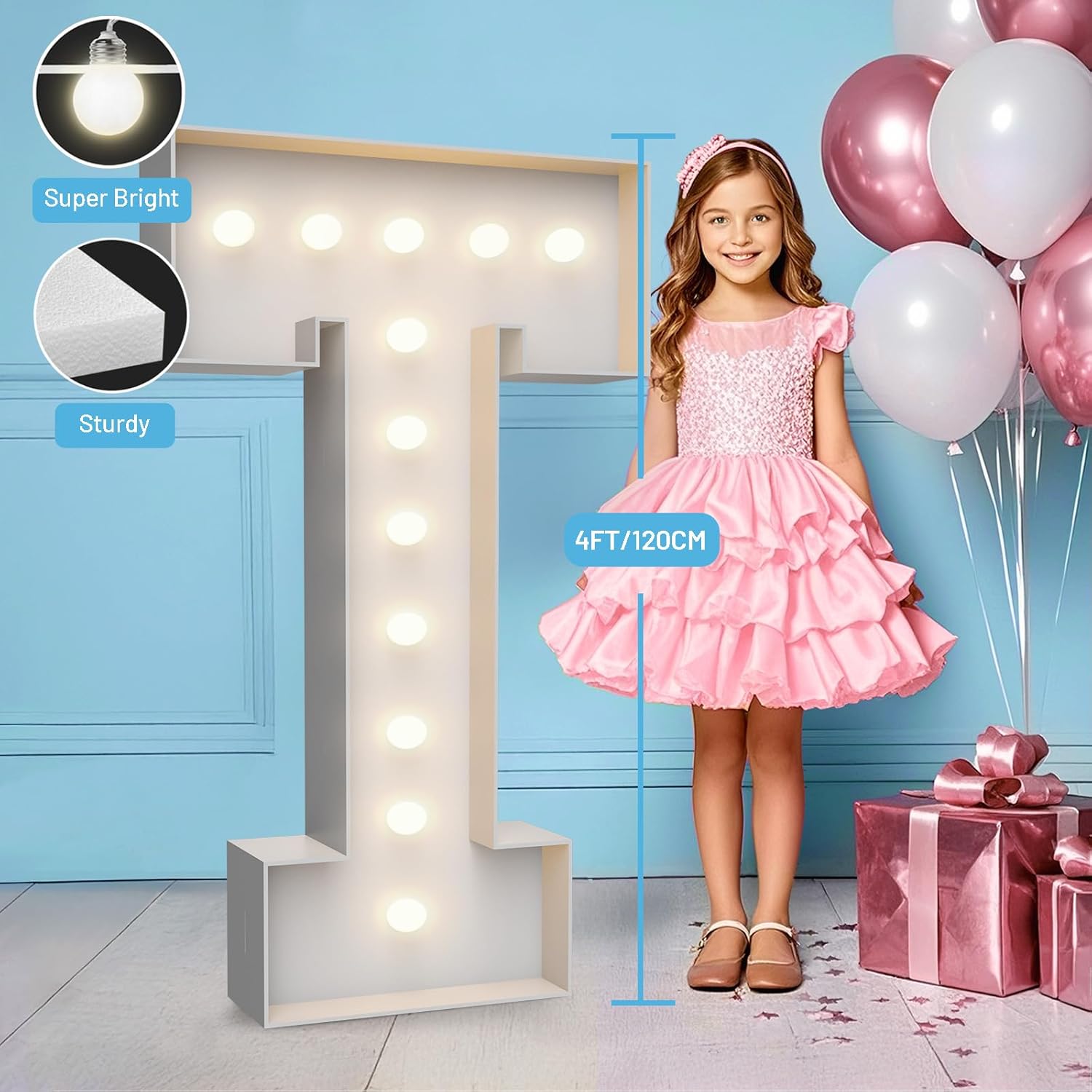 4FT Marquee Light Up Letters T,Party Decoration Large Marquee Light Up Letters with Weighted Water Bag,Pre-cut Foam Board Set Can Be Used for Birthdays,Weddings,Baby Anniversaries