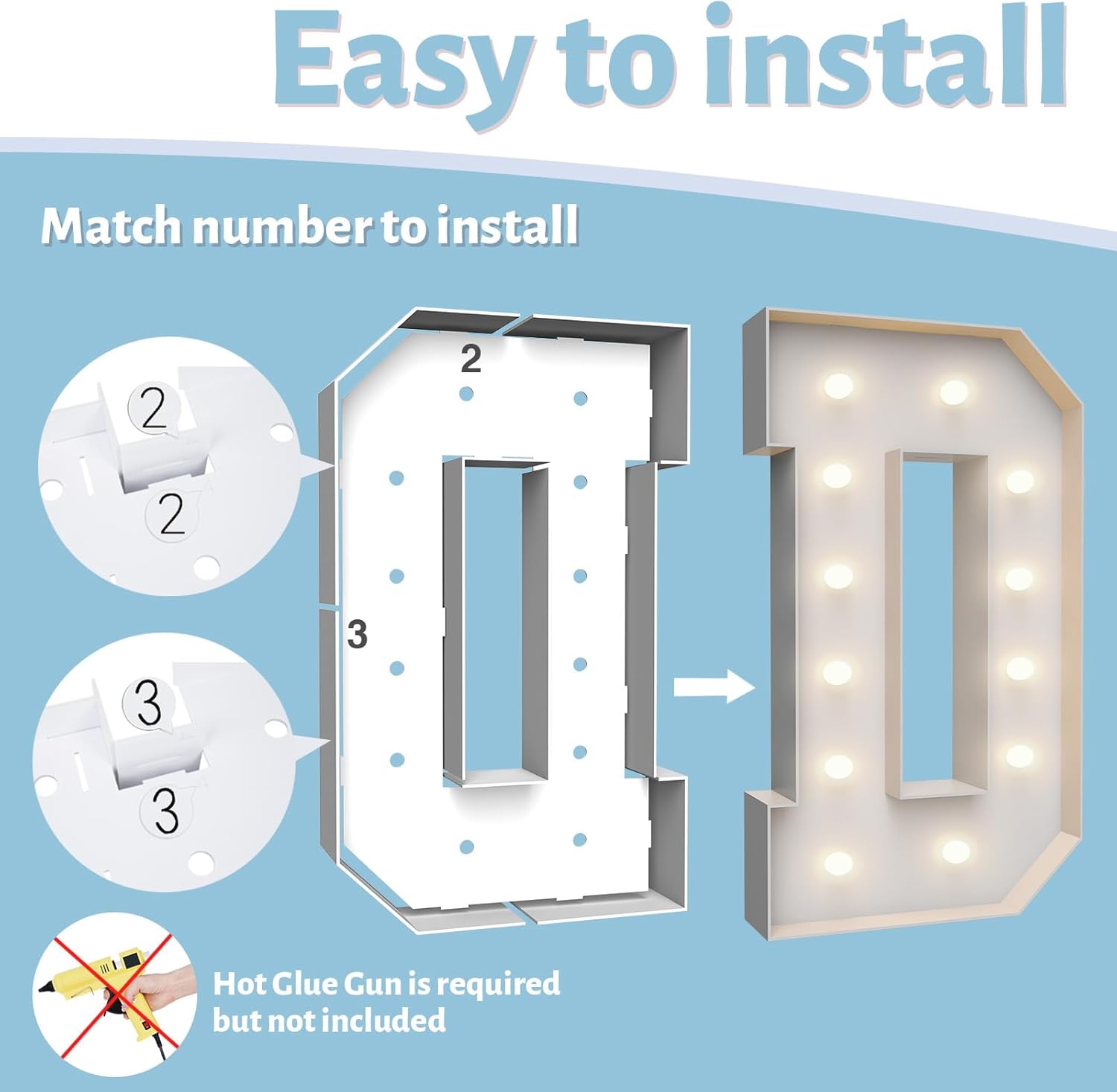 - ASSEMBLY REQUIRED: The marquee numbers need to be assembly with hot glue gun(not included in the package) Assemble it in advance will make your party amazing and fantastic
