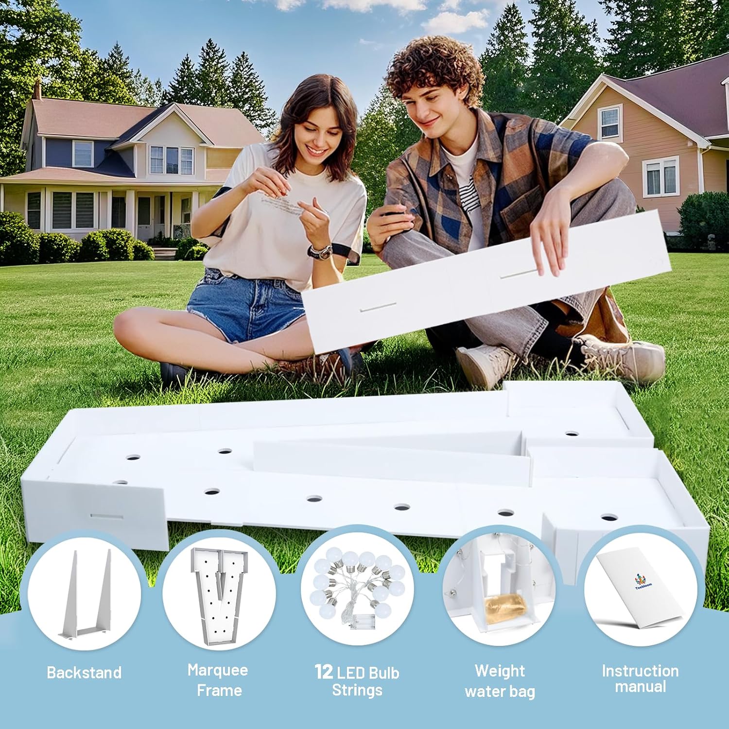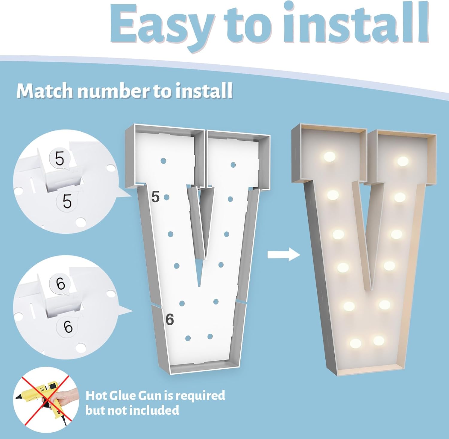 4FT Marquee Light Up Letters V,Party Decoration Large Marquee Light Up Letters with Weighted Water Bag,Pre-cut Foam Board Set Can Be Used for Birthdays,Weddings,Baby Anniversaries