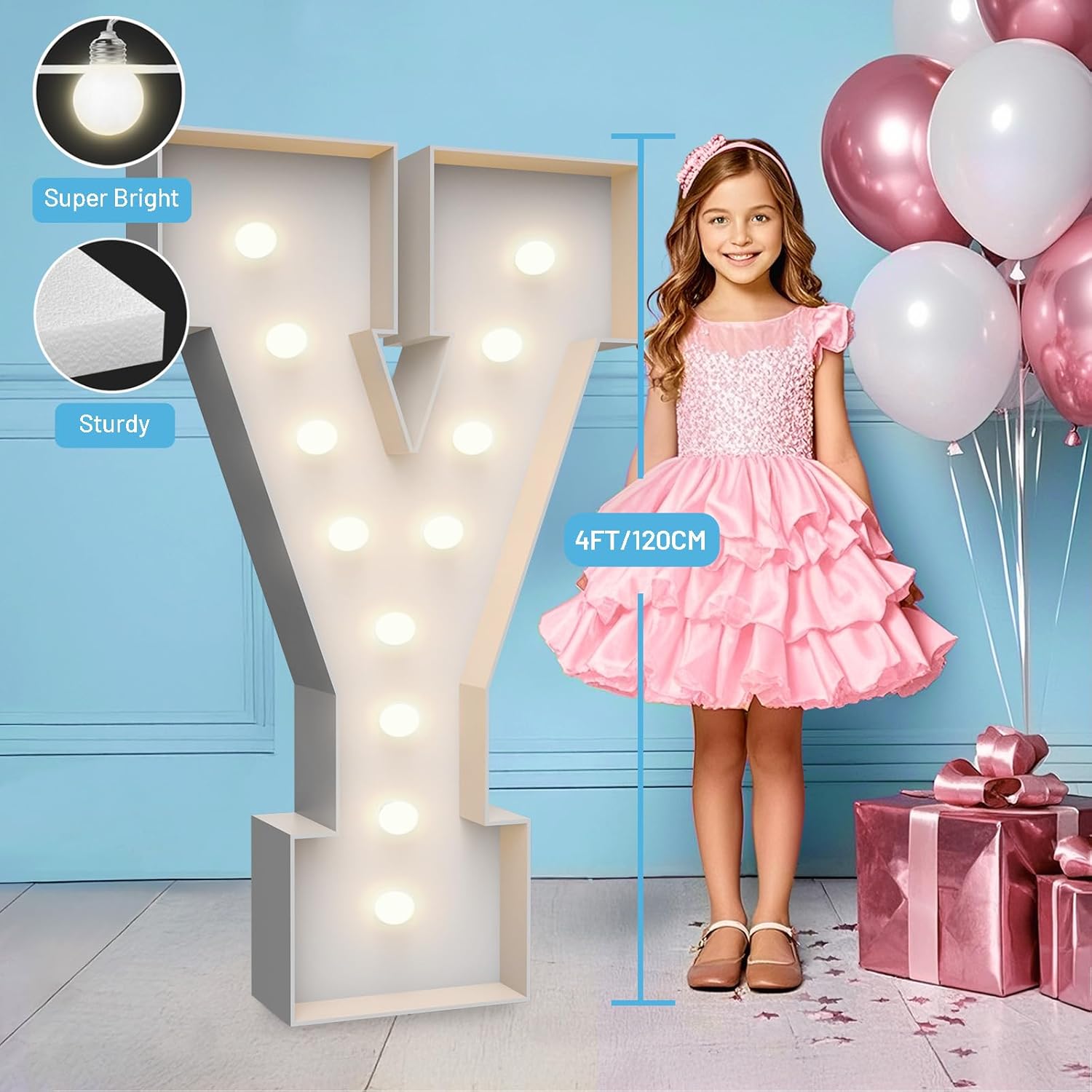 4FT Marquee Light Up Letters Y,Party Decoration Large Marquee Light Up Letters with Weighted Water Bag,Pre-cut Foam Board Set Can Be Used for Birthdays,Weddings,Baby Anniversaries