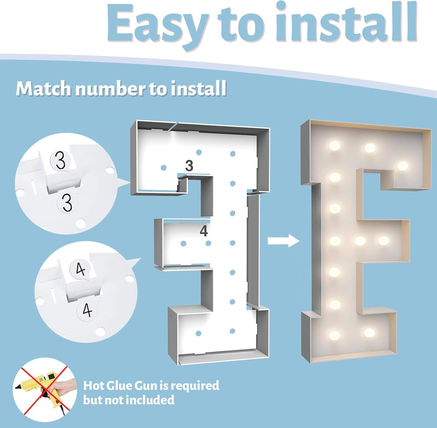 - ASSEMBLY REQUIRED: The marquee numbers need to be assembly with hot glue gun(not included in the package) Assemble it in advance will make your party amazing and fantastic