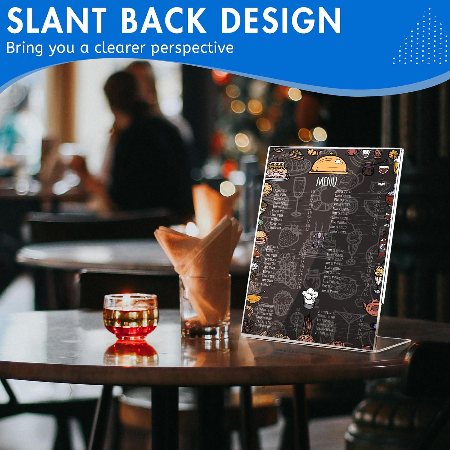 - Standard Size and Vertical: You will receive 12 clear vertical acrylic stands measuring 8"*11". The size of the acrylic sign holder is regular paper size, which can fit most of the paper. The clear plastic paper holder has a simple and stylish design that complements them in a variety of styles. Note: In order to ensure that you receive the most perfect sign holder stand, we have attached a protective film on the surface of each clear paper holder stand, please remove the film before use