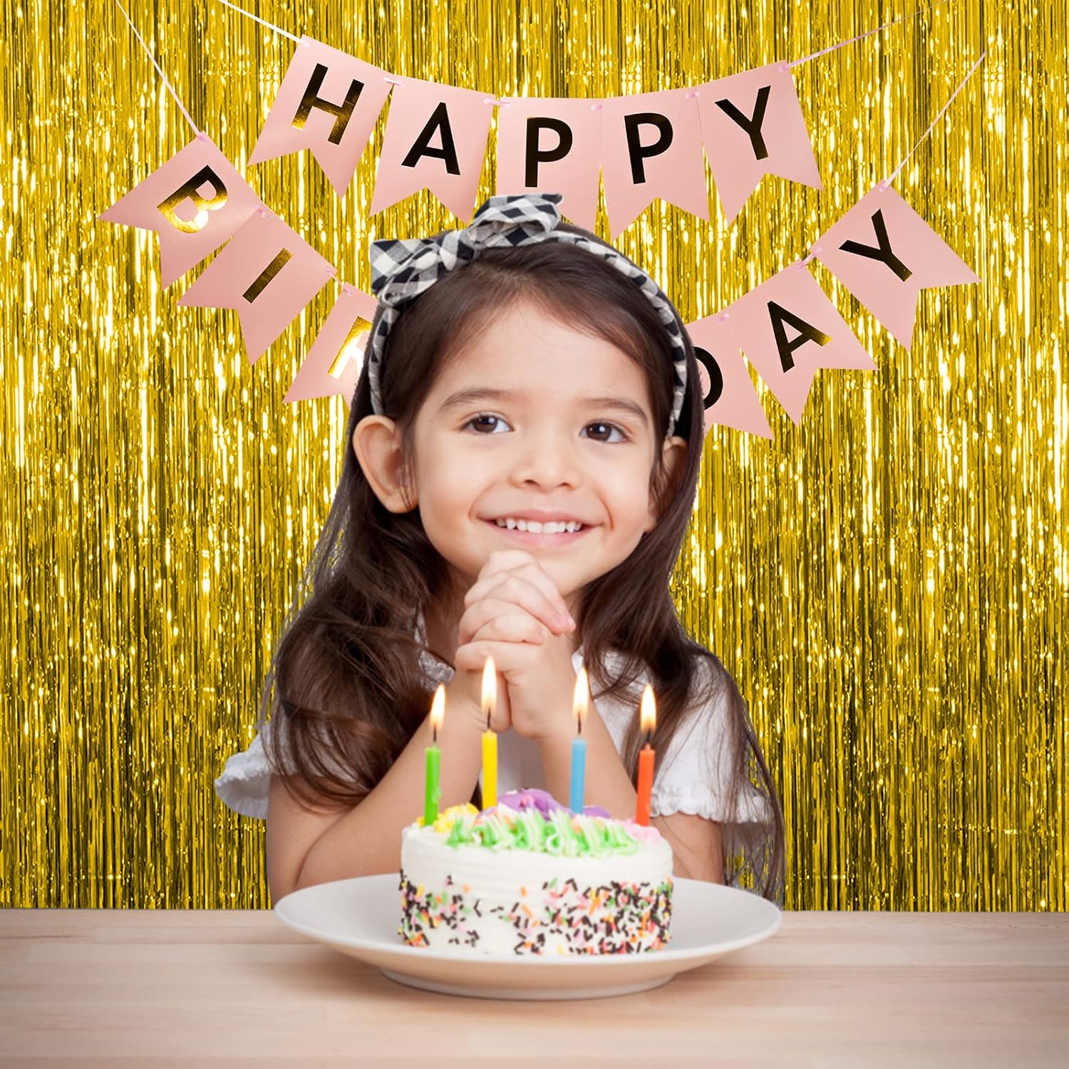 5 Pack Gold Fringe Curtain Backdrop Tinsel Streamers Birthday Party Decorations Christmas Photo Booth Backdrop Halloween New Year Graduation Baby Shower Theme Party Decorations
