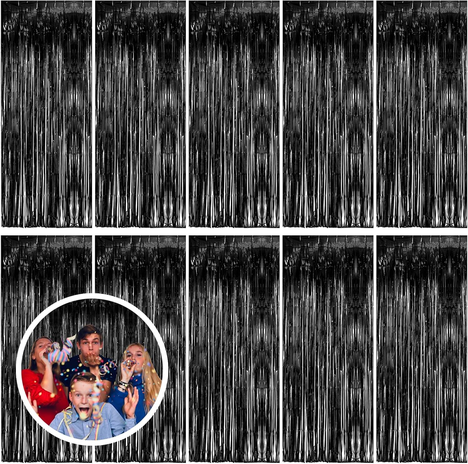 10 Pack Black Party Streamers Backdrop Tinsel Foil Fringe Curtains Halloween Birthday Party Decorations Graduation Wizard Party Supplies