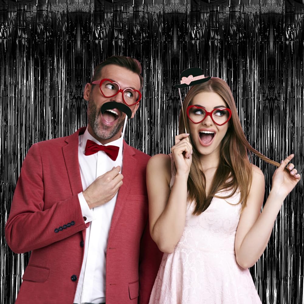 20 Pack Black Party Streamers Backdrop Tinsel Foil Fringe Curtains Halloween Party Decorations Birthday Wednesday Twilight Party Decorations Graduation Wizard Party Supplies