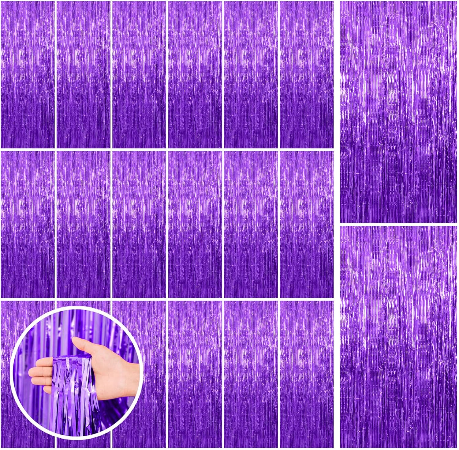 20 Pack Purple Backdrop Tinsel Streamers Foil Fringe Backdrop Halloween Party Decorations Purple Backdrop Curtain Birthday Graduation Bachelorette Christmas New Year Party Decorations