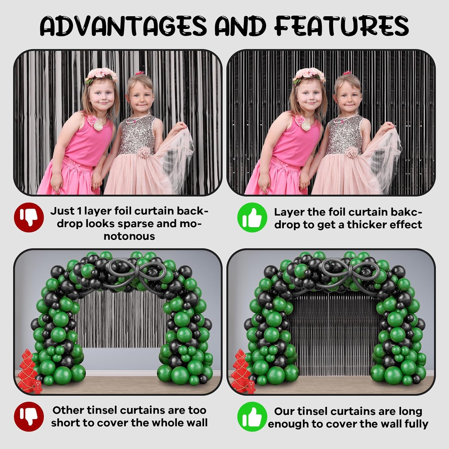 - Premium Material: This black foil curtain backdrop is made of stable tinsel, non-fading, stay shiny and reusable. Unfold it and then enjoy your glittering party