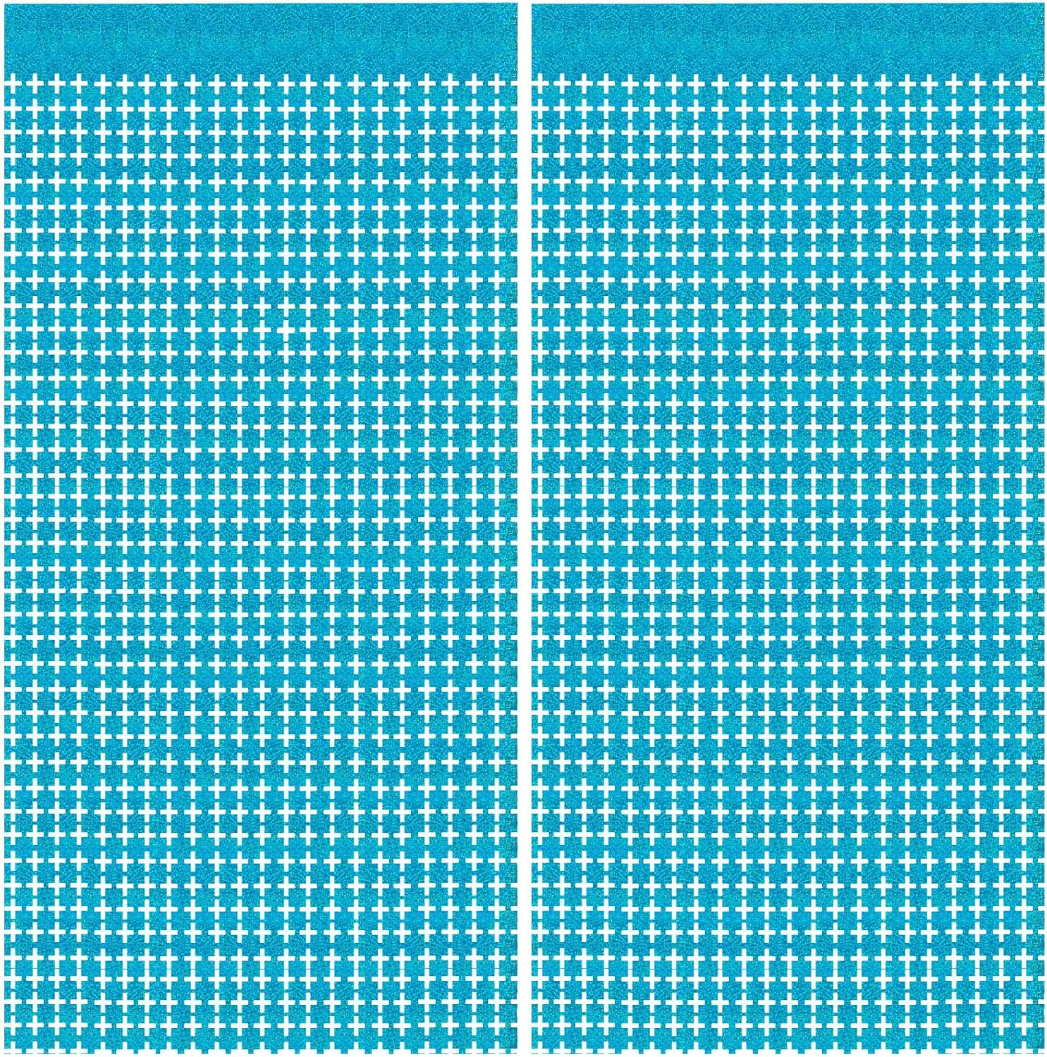 - Blue Streamers Party Decorations You will get 2pcs 3.2 x 6.5 feet blue square shape laser foil fringe tinsel curtain. You can use to decorate party easily, door streamer. Sparkle and bling streamerswill definitely create a Shiny nice atmosphere for your party.
