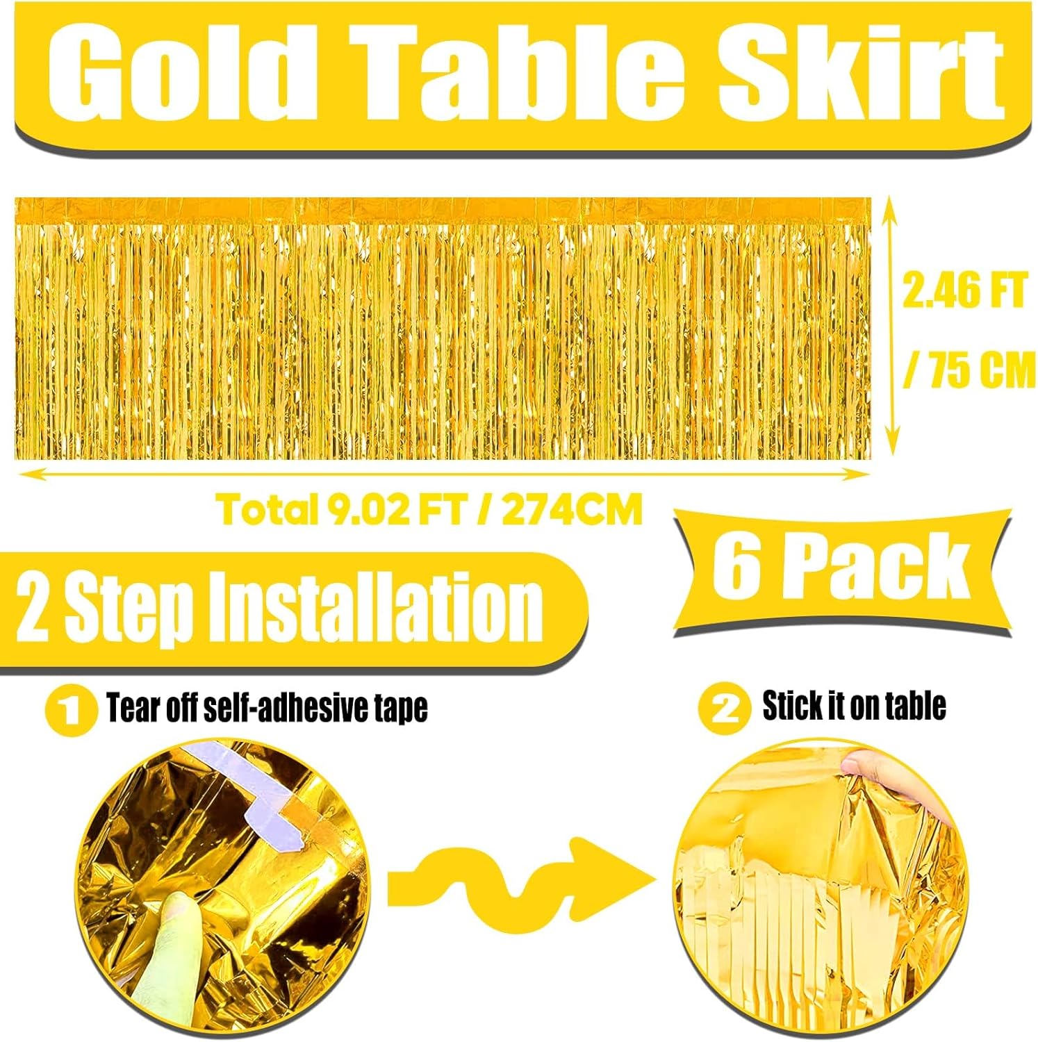 - 【Easy to Use】Each metallic fringe table skirts comes with self-adhesive tape on the top for easy attachment to your wall or table, just peel off the tape and then stick, easy and fast to install.