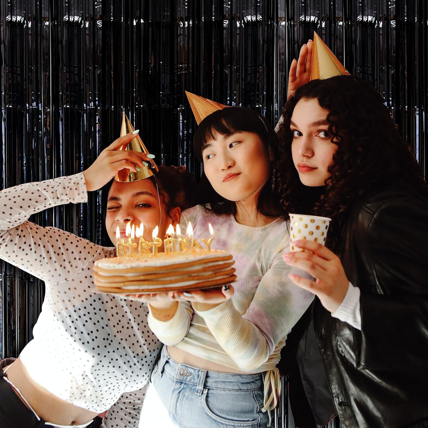 Black Party Streamers Foil Fringe Backdrop Curtains Tinsel Streamers Birthday Party Decorations Fringe Backdrop for Birthday Party Graduation Bridal Shower