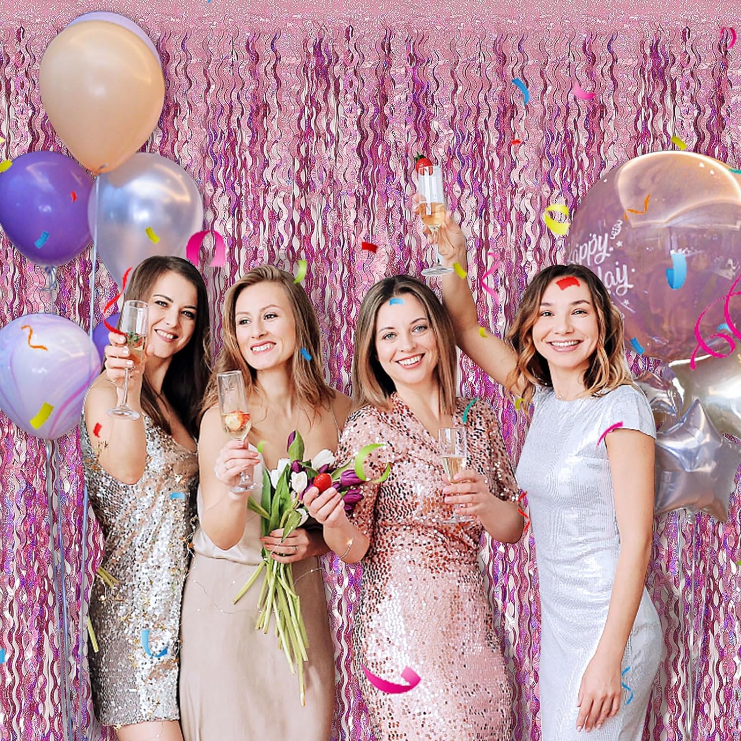 Pink Tinsel Foil Fringe Curtains Wavy Backdrop for Parties Sparkle Metallic Wavy Foil Fringe Backdrop Curtain for Party Decorations Photo Booth Props for Birthday Graduation Wedding