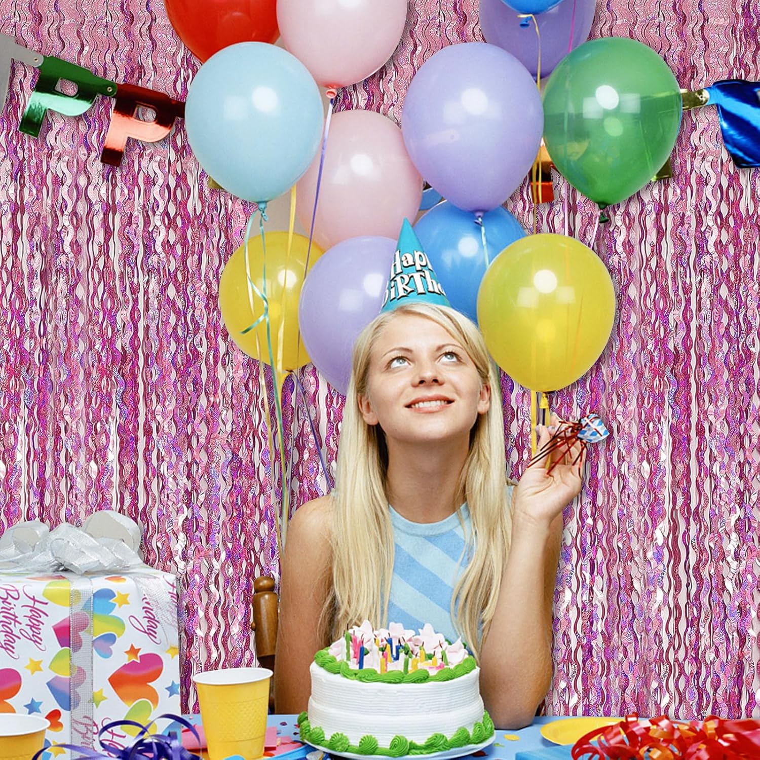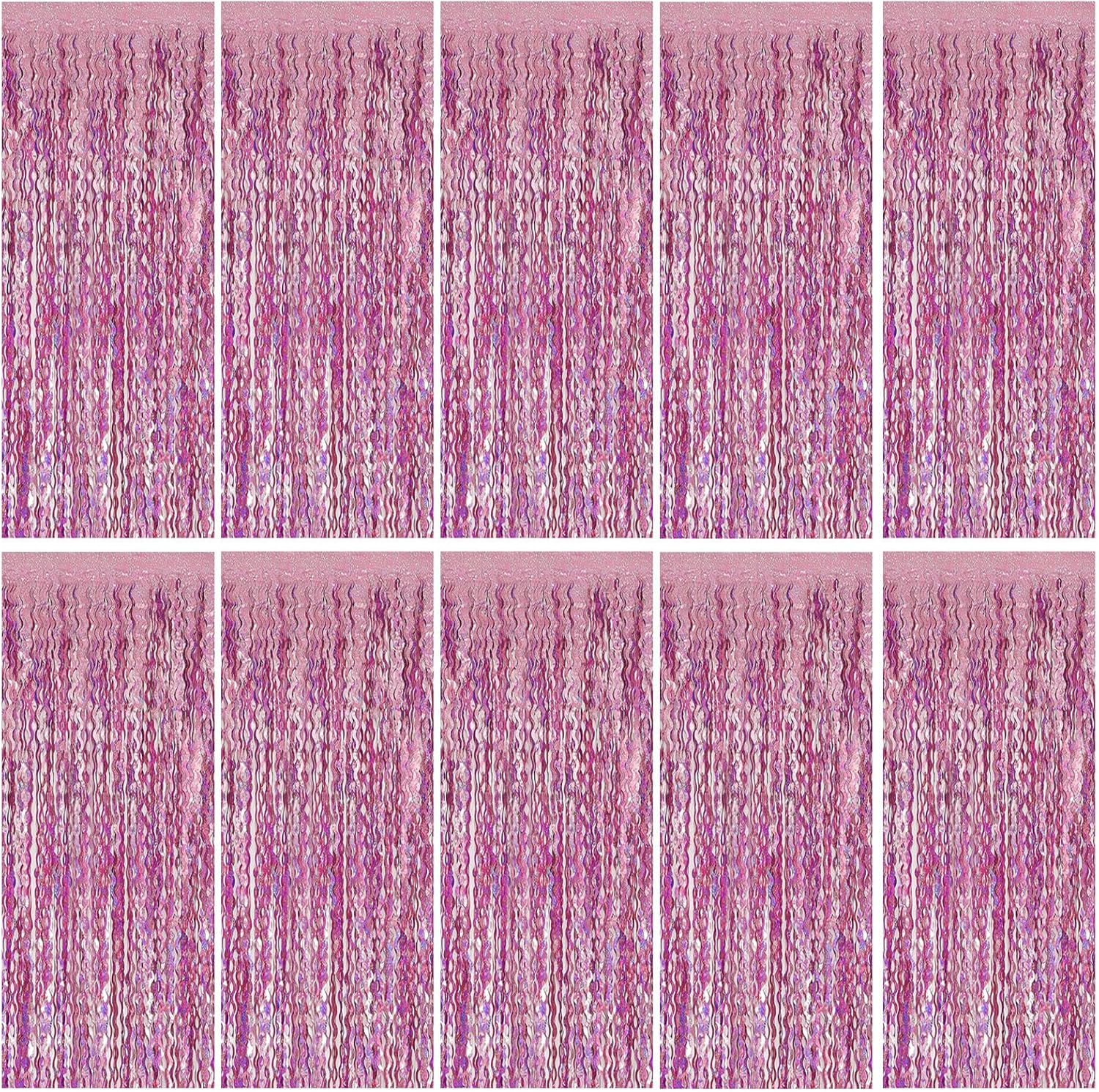 - Pink Streamers Backdrop:10Pack, each curtains size is 3.28 ft x 6.56 ft, enough length foil fringe backdrops are perfect for the door, wall and table,feel free to cut to any length you want.