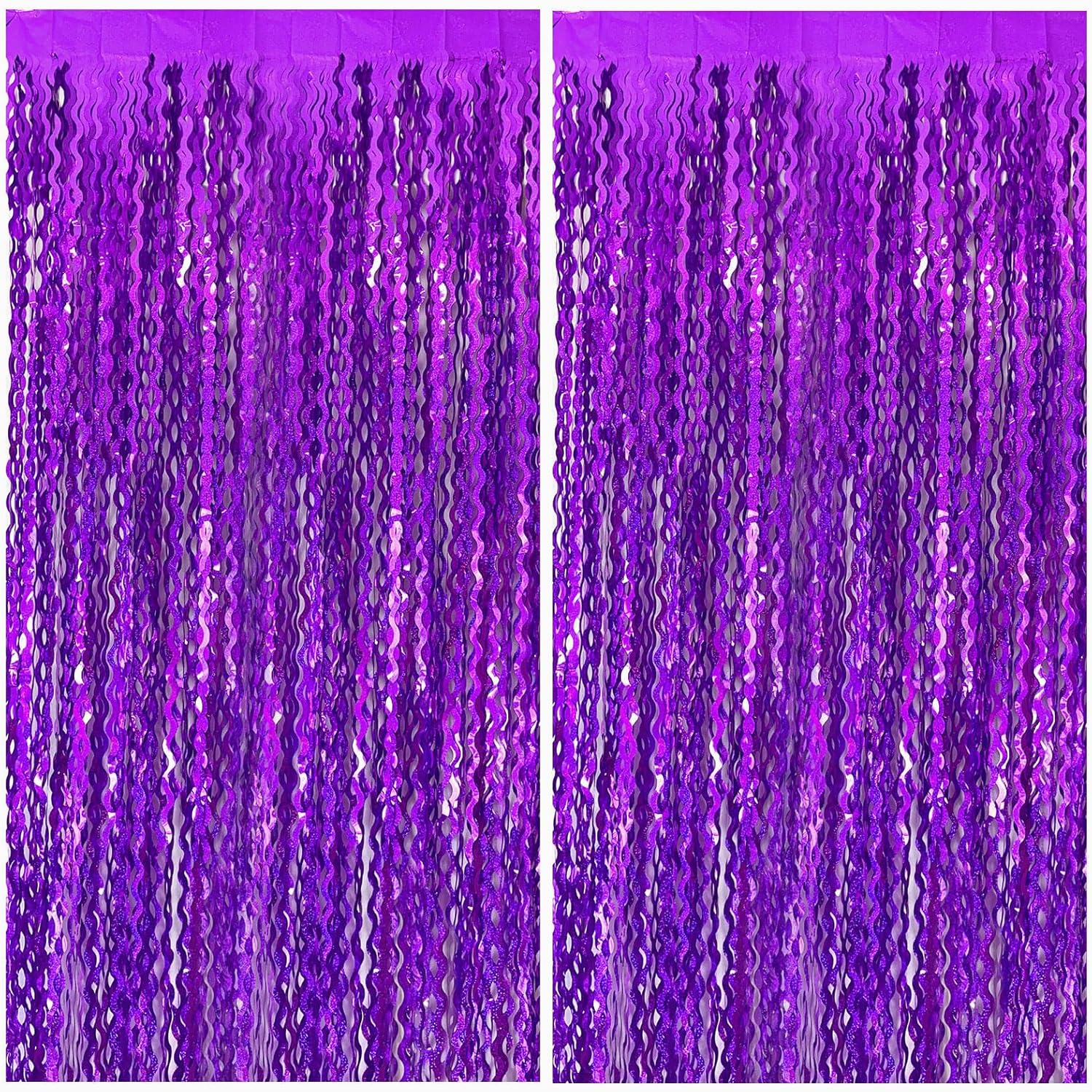 2 Pack Purple Backdrop Tinsel Foil Fringe Curtains Sparkle Metallic Wavy Foil Fringe Backdrop Curtain Photo Booth Props for Halloween Party Decorations Birthday Graduation Bachelorette