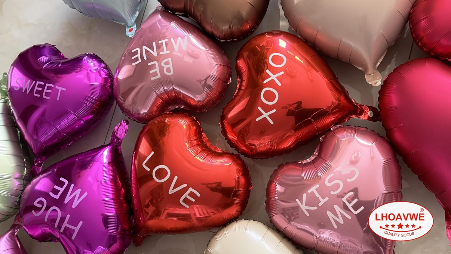 - Package included:12 Pcs 18 inch foil heart balloons(4pcs Red+4 pcs Hot pink+4 pcs Pink heart shaped balloons with XOXO/LOVE/SWEET/BE MINE/HUG ME/KISS ME printed)+1pcs straw+1pcs 32 foot Ribbon Roll+20 dots glue