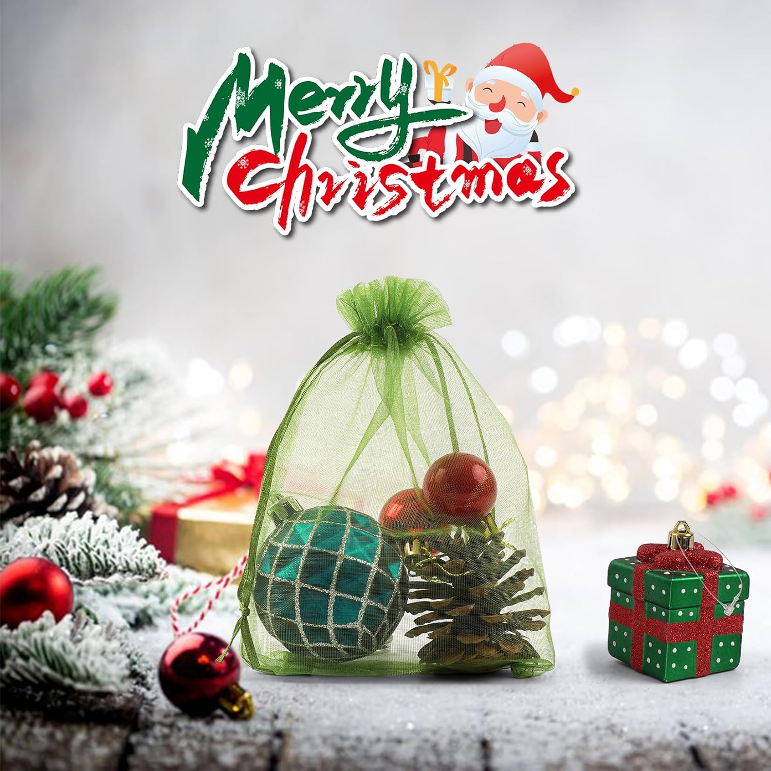 ANZNKU 100 Pack Green Organza Bags 4 x 6 inch Premium Sheer Drawstring Small Mesh Bags for Candy Jewelry Party Christmas Wedding Favor Gift Bag