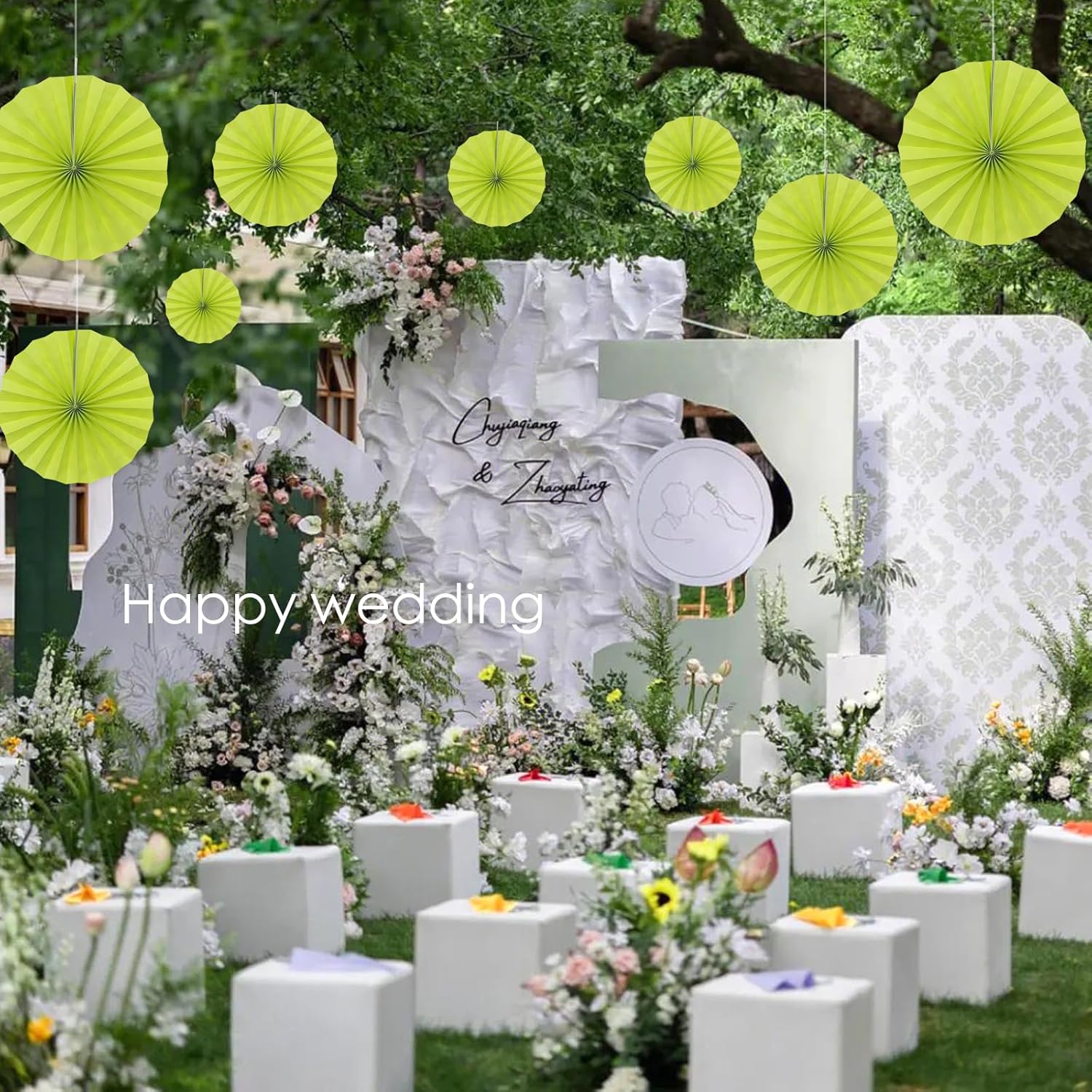 BARTHEW Green Graduation Party Decor, Tropical Party Decorations, 12in Hanging Paper Fans 30 Color DIY Set (Clear Green)
