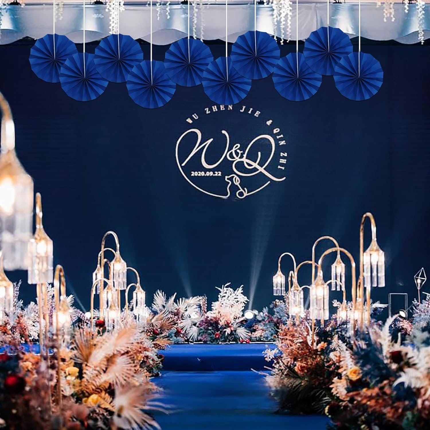 Blue Birthday Decorations,DIY Blue Paper Fans Hanging Decoration ,Party Decorations for Adults 8in, Royal Blue Birthday Decorations,Baby Shower Decorations 30 Color DIY Set (Navy Blue)