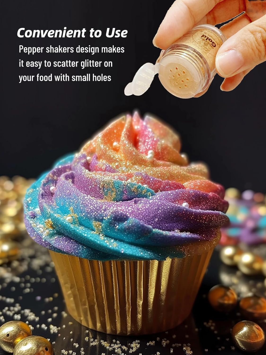 - 【Ideal Cake Decorating Supplies Dust and Multi Using】Edible prism powder is food-grade shimmer disco edible glitter is approved for both food and drink consumption,so is great to use for drinks, beverages, cocktails, and suitable for fondant, cakes pop , cookies, cupcakes, cake decorating, macaron, icing cream, and other gourmet baked goods, glossy glitter cake topper for desserts, metal finish, chocolate, strawberries, pull candy/isomaltose, etc.,