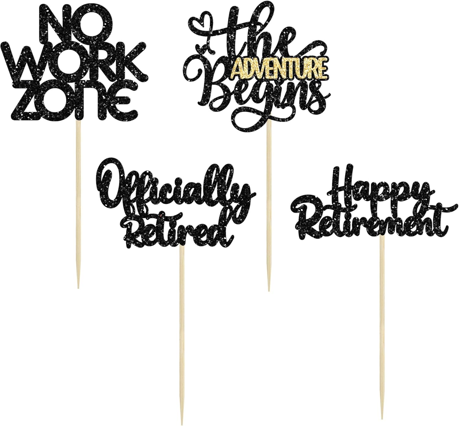 24Pcs Happy Retirement Cupcake Toppers Officially Retired No Work Zone Adventure Begins Cupcake Pick Decorations Retirement Theme Farewell Birthday Party Cake Decorations Supplies Black