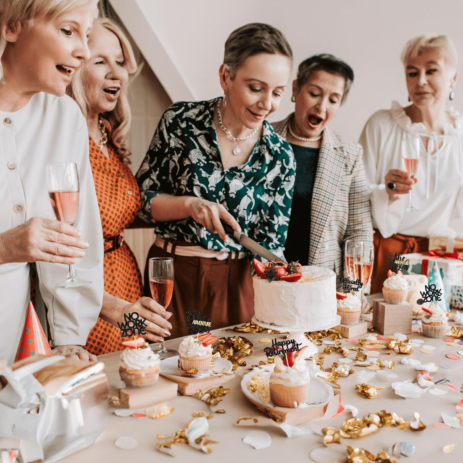 - 【NO Required】: 24Pcs Happy Retirement Cupcake Toppers can put in the cake directly! These Happy Retirement Cupcake Toppers saves your time and super easy to use. You can easily dress up your birthday theme cakes, yes! but don't stop there, put them into desserts, cookies, fruit pieces, appetizers, muffins and so much more!