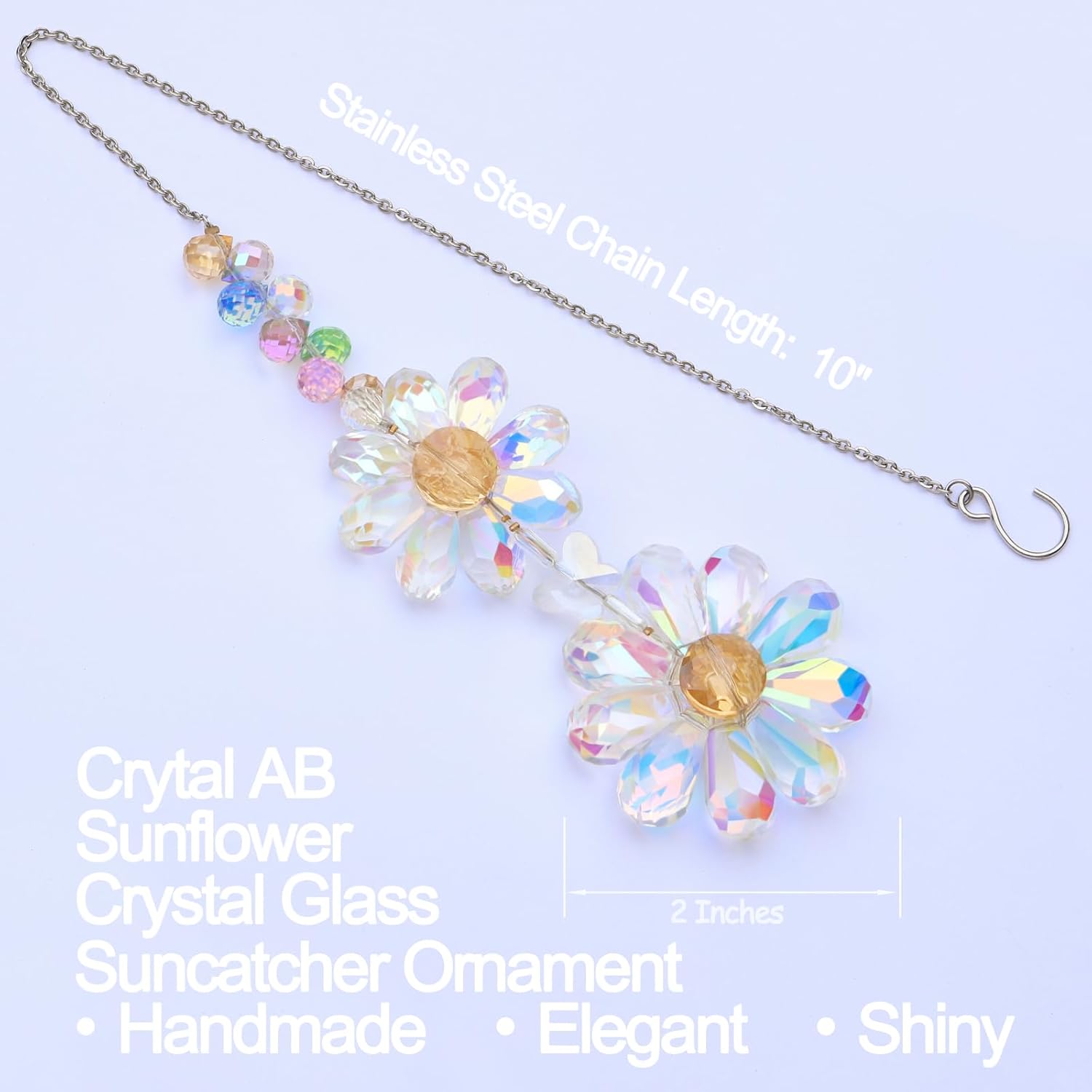 Crystal Flower Suncatcher Hanging Ornament, Rainbow Maker Window Sun Catcher Indoor Outdoor Patio Garden Decor (Crystal AB)