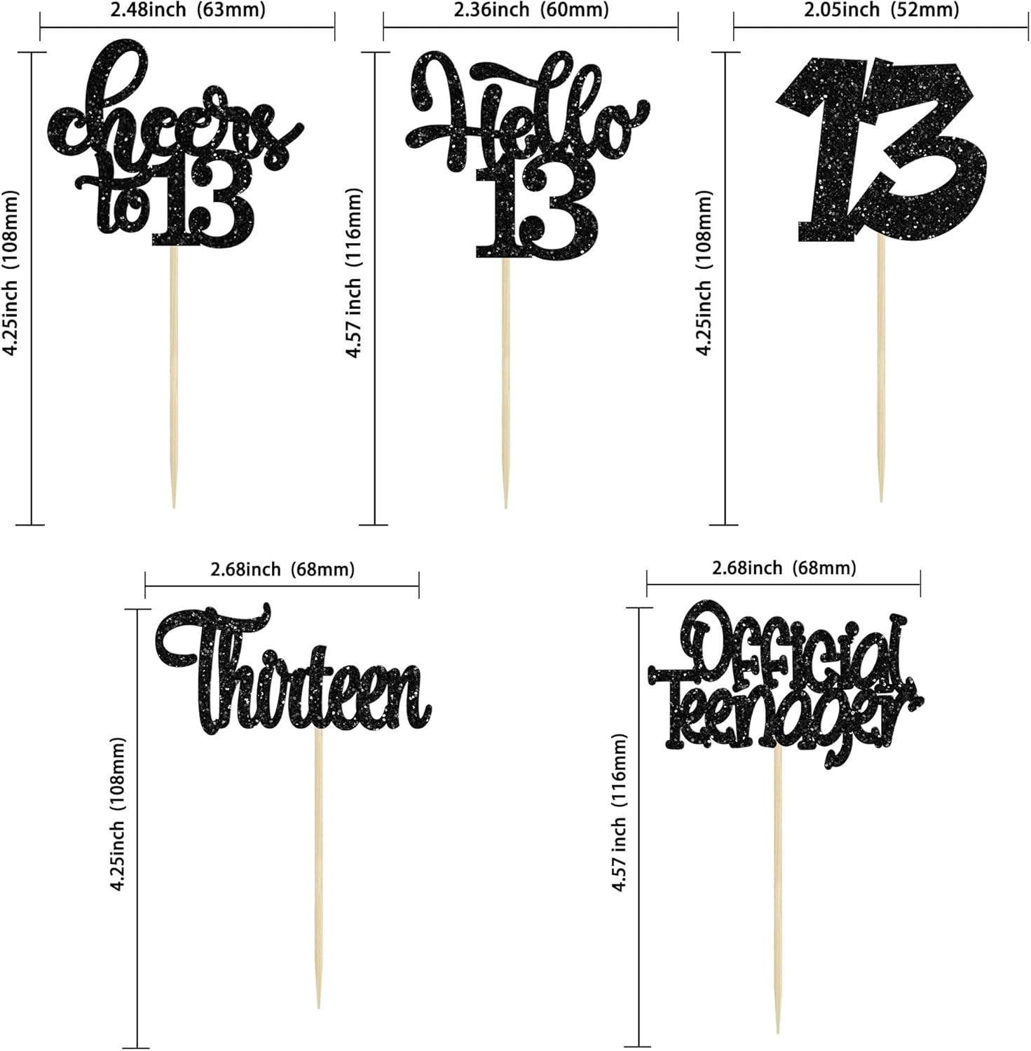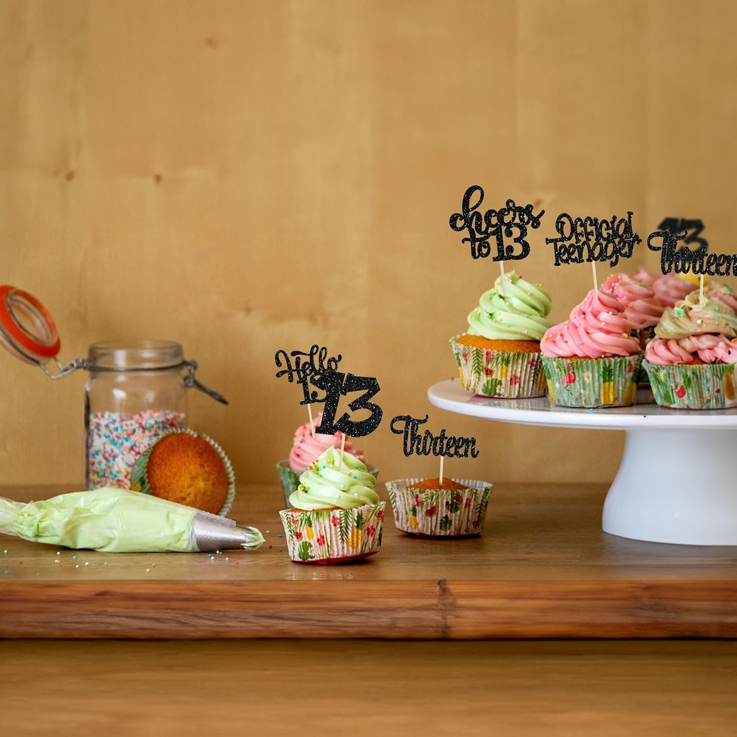 30Pcs 14th Birthday Cupcake Toppers Hello 14 Cupcake Picks Fourteen Cheers to 14 Years Old Cake Decorations for 14th Birthday Anniversary Party Supplies Black Glitter