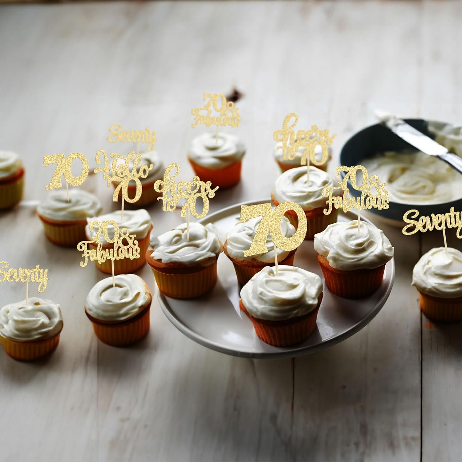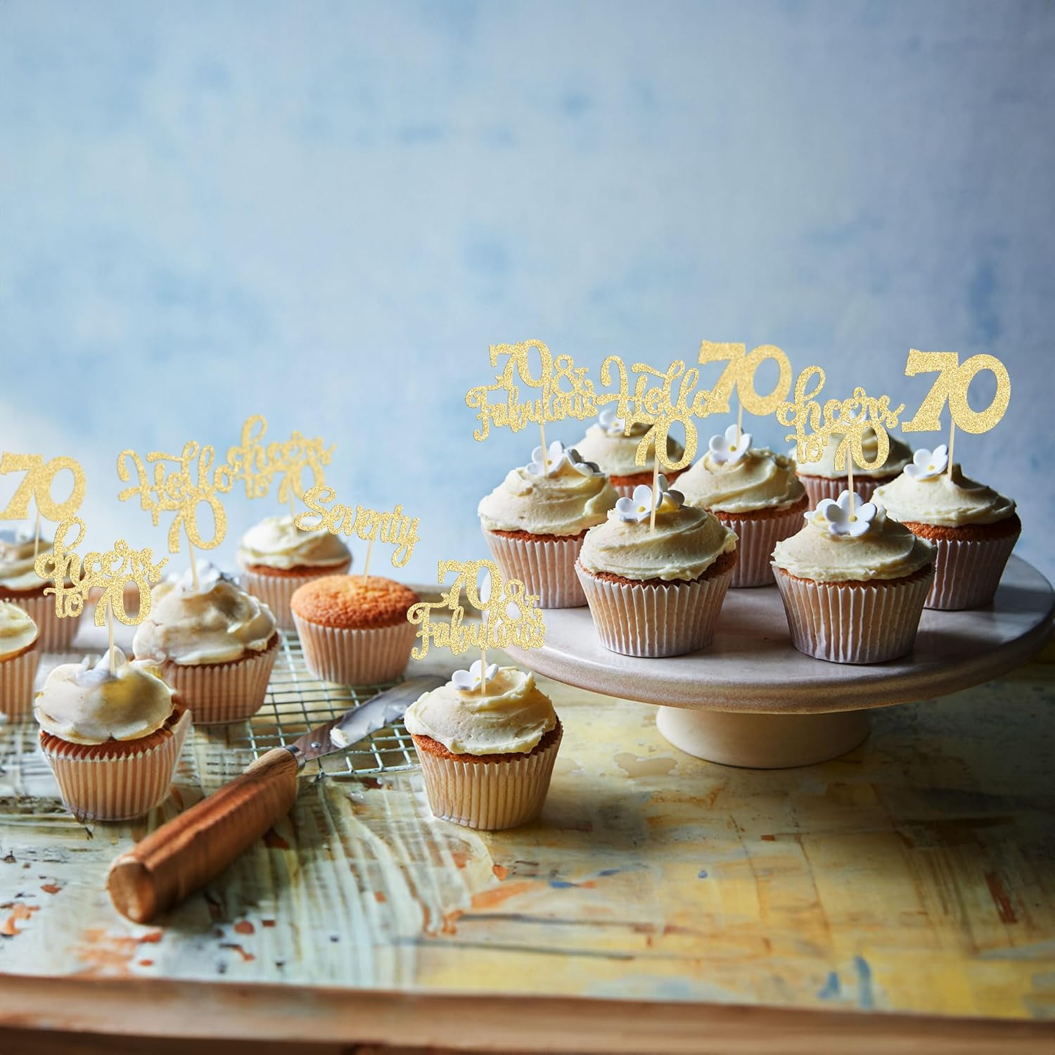 - -These Happy 70th Birthday Cupcake Toppers are so cute and good for happy 70th birthday theme party, cheers to 70 years theme party, 70 fabulous theme party, happy 70th birthday anniversary theme party cake decorations. They can make your cupcake more attractive and bring the fun to your party. You can also apply them for ice cream, fruits, cookies and other desserts.