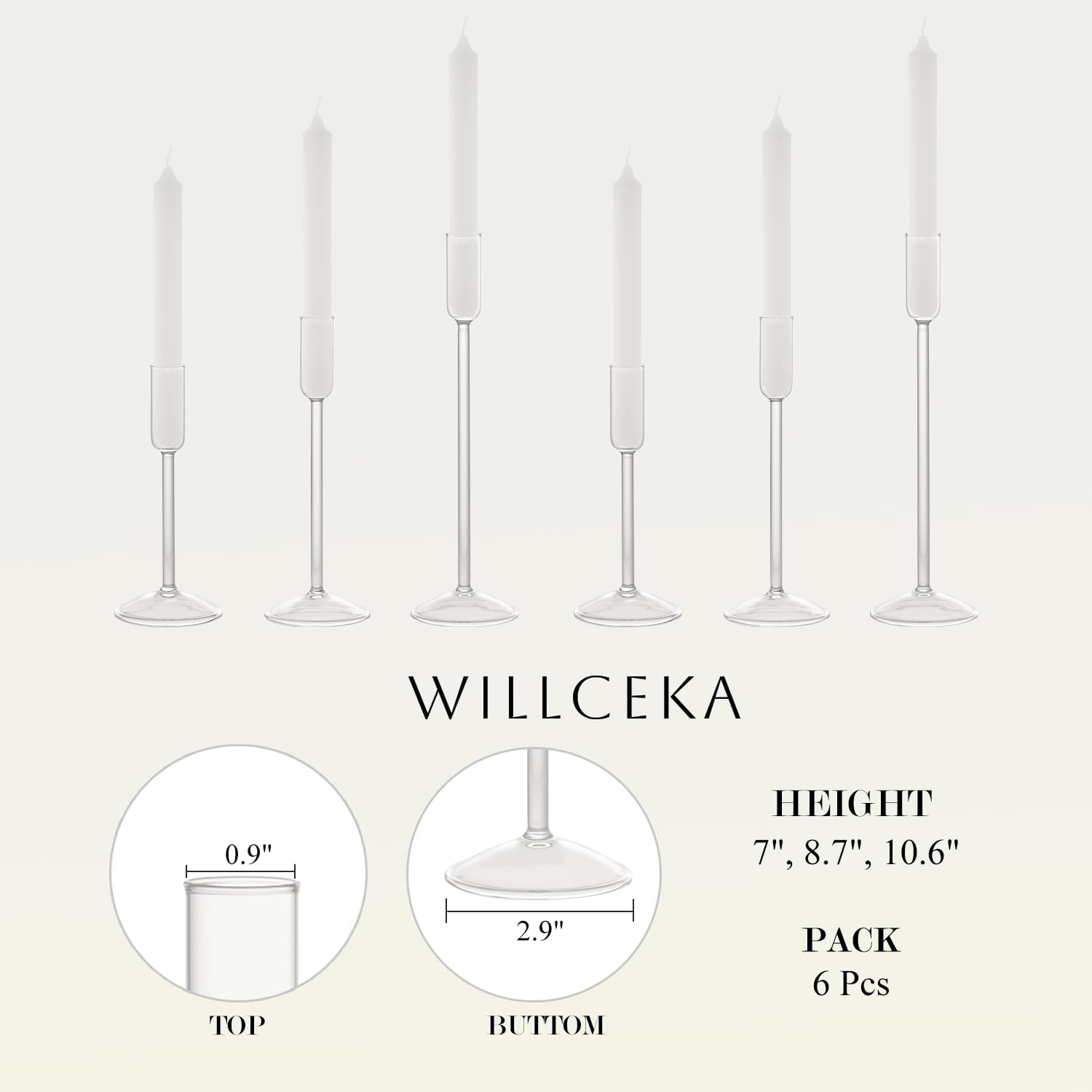 - Willceka candlestick holder set is made of premium borosilicate glass, clear and tough. All in good packaging for your easy storage. Display it on a shelf as is and place as a centerpiece at your next dinner party