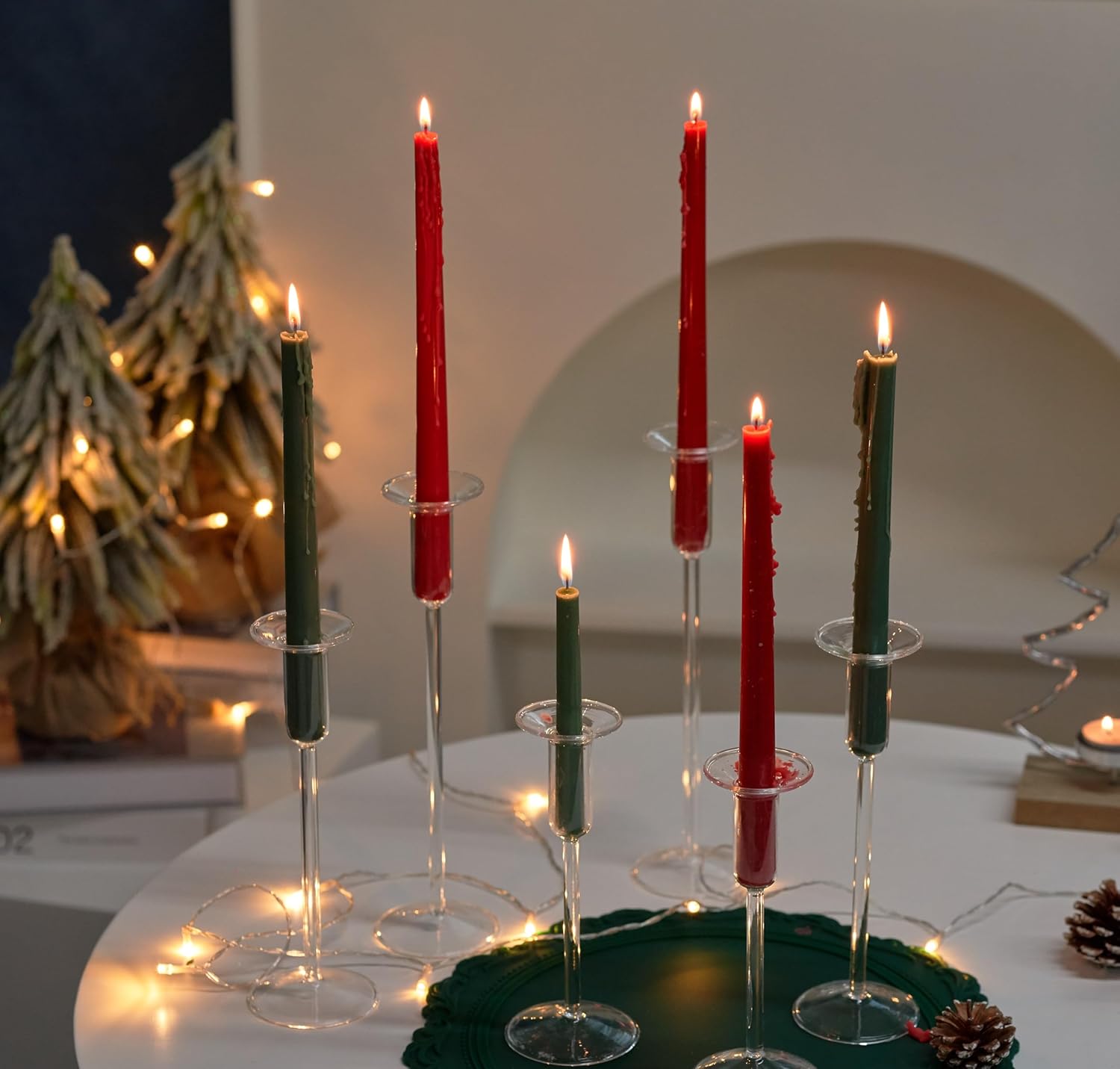 Candle Holder, Glass Taper Candle Tall Candlestick Holder, 3 Different Heights, for Table Centerpiece, Wedding, Party, Clear, 6pcs