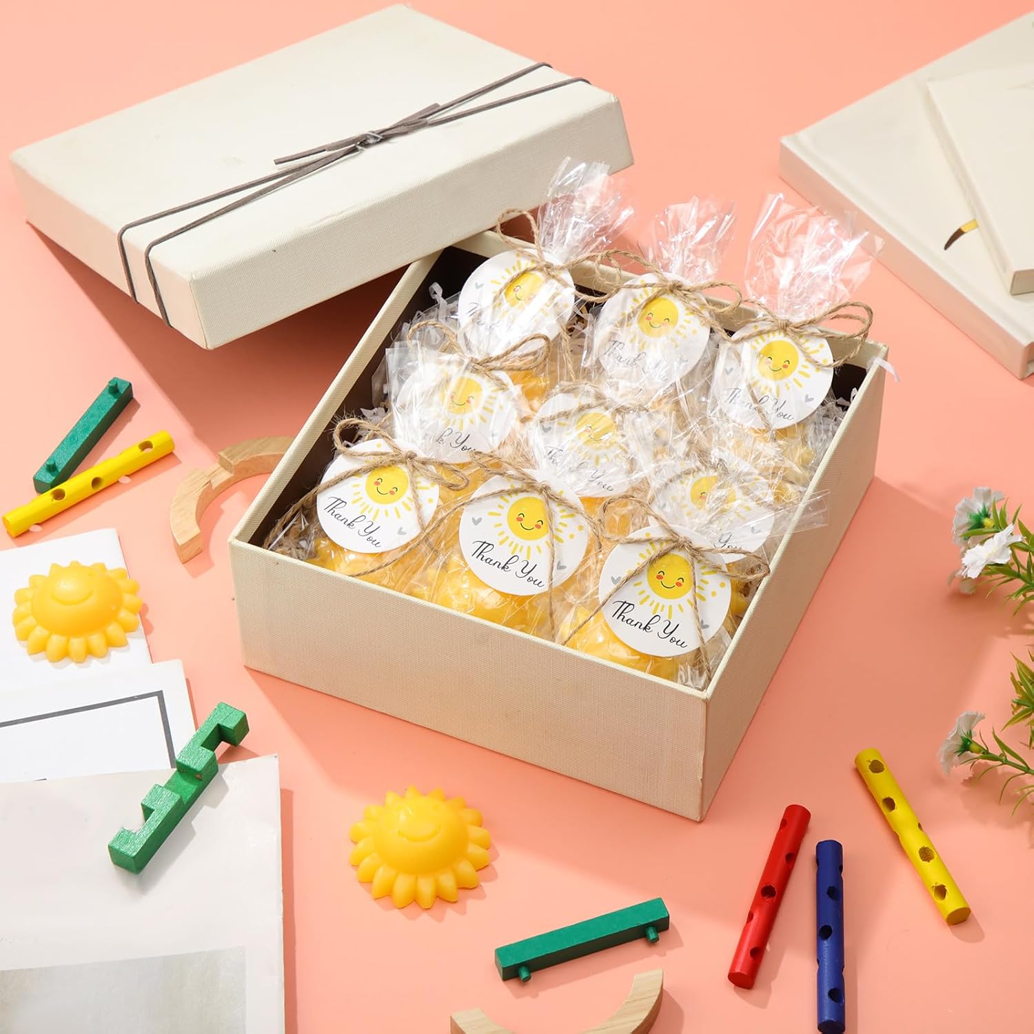 - Lovely Appearance: our handmade soaps not only have lovely patterns, but also have a pleasant light scent; Take a refreshing bath with our soaps, and your guests will recall the happy times they had at your baby shower; Our thank you cards are printed with warm messages and come with a bag for you to give away