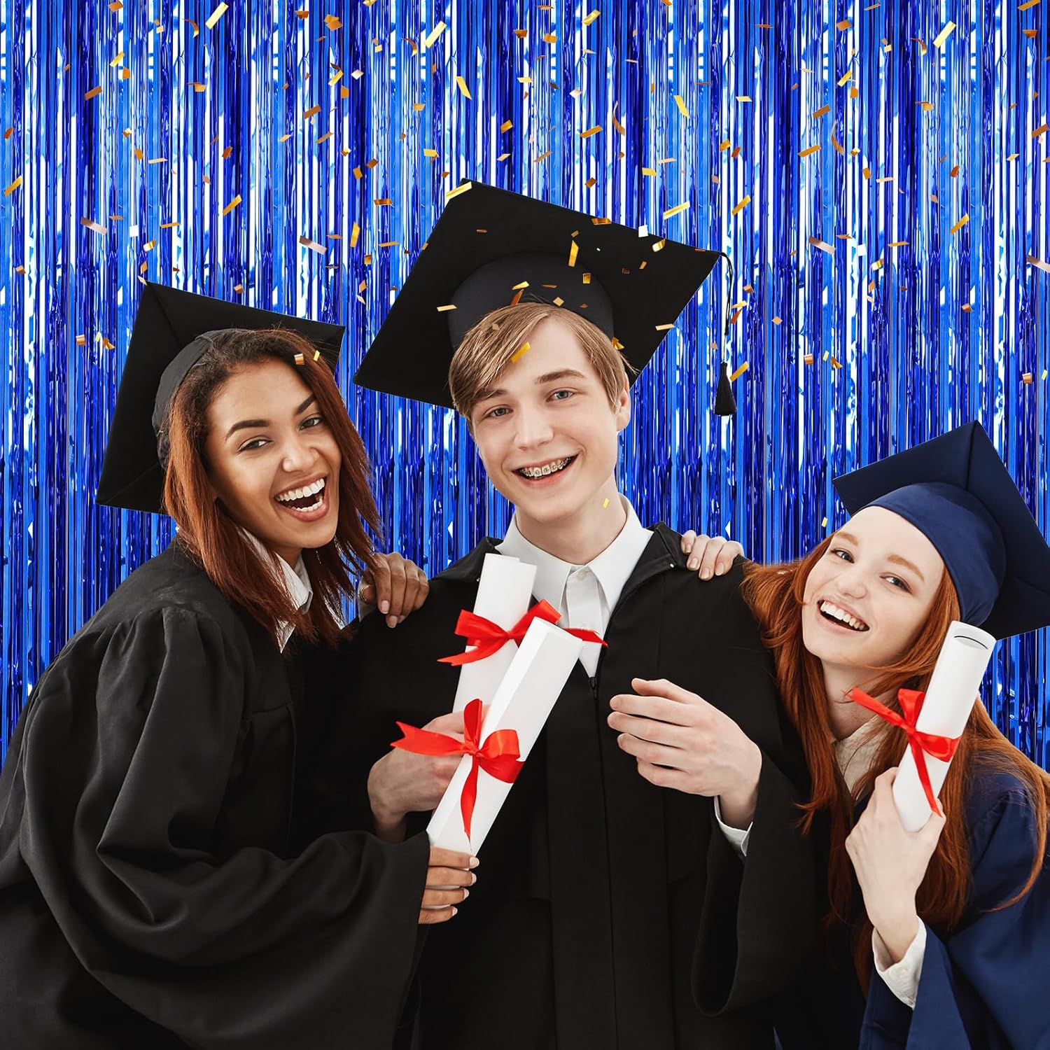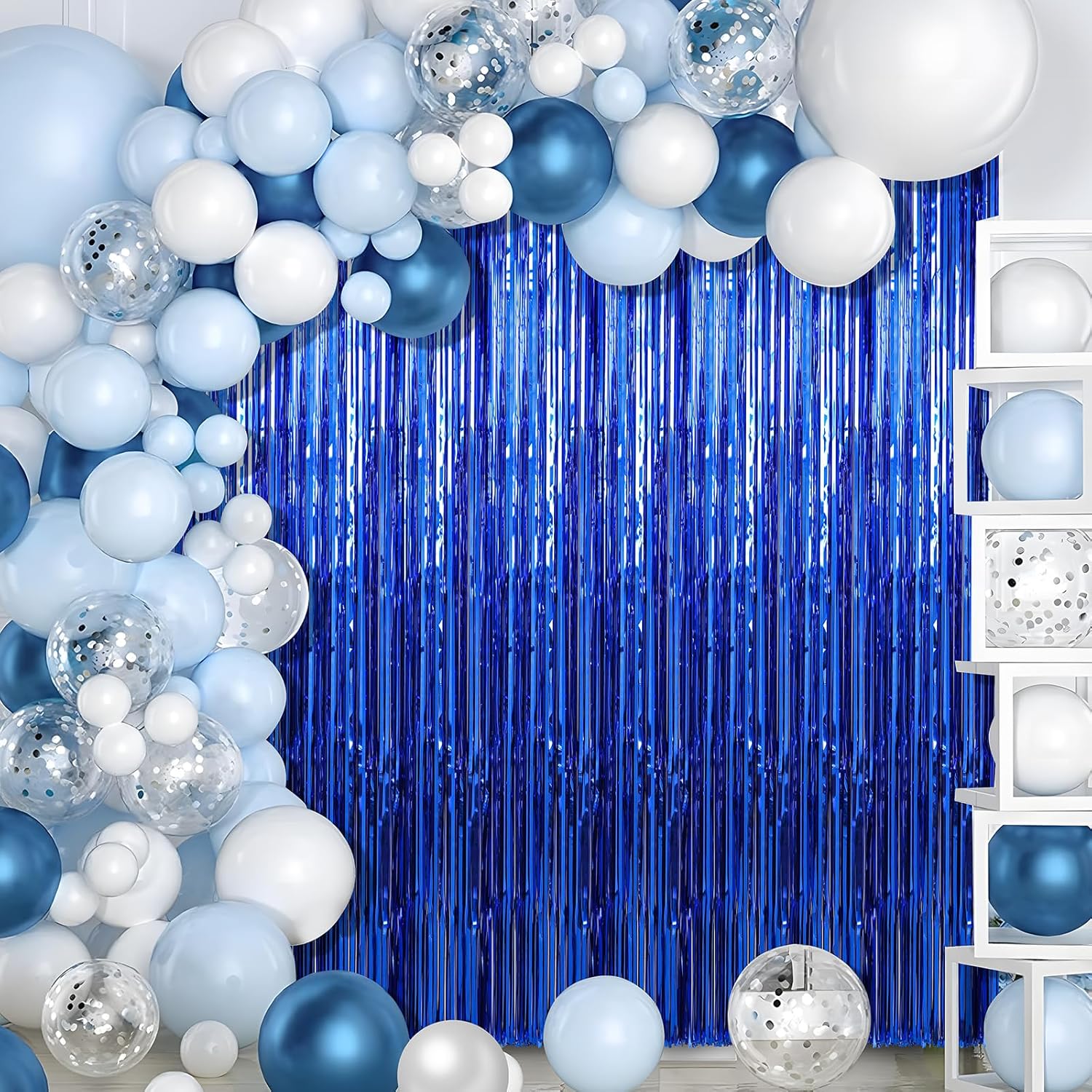 2 Pack Blue Foil Fringe Curtains Streamers Party Decorations 3.3 x 8.2 ft, Blue Tinsel Curtain Fringe Backdrop for Parties, Door Fringe Birthday Streamers, Photo Booth Backdrops, Party Decor