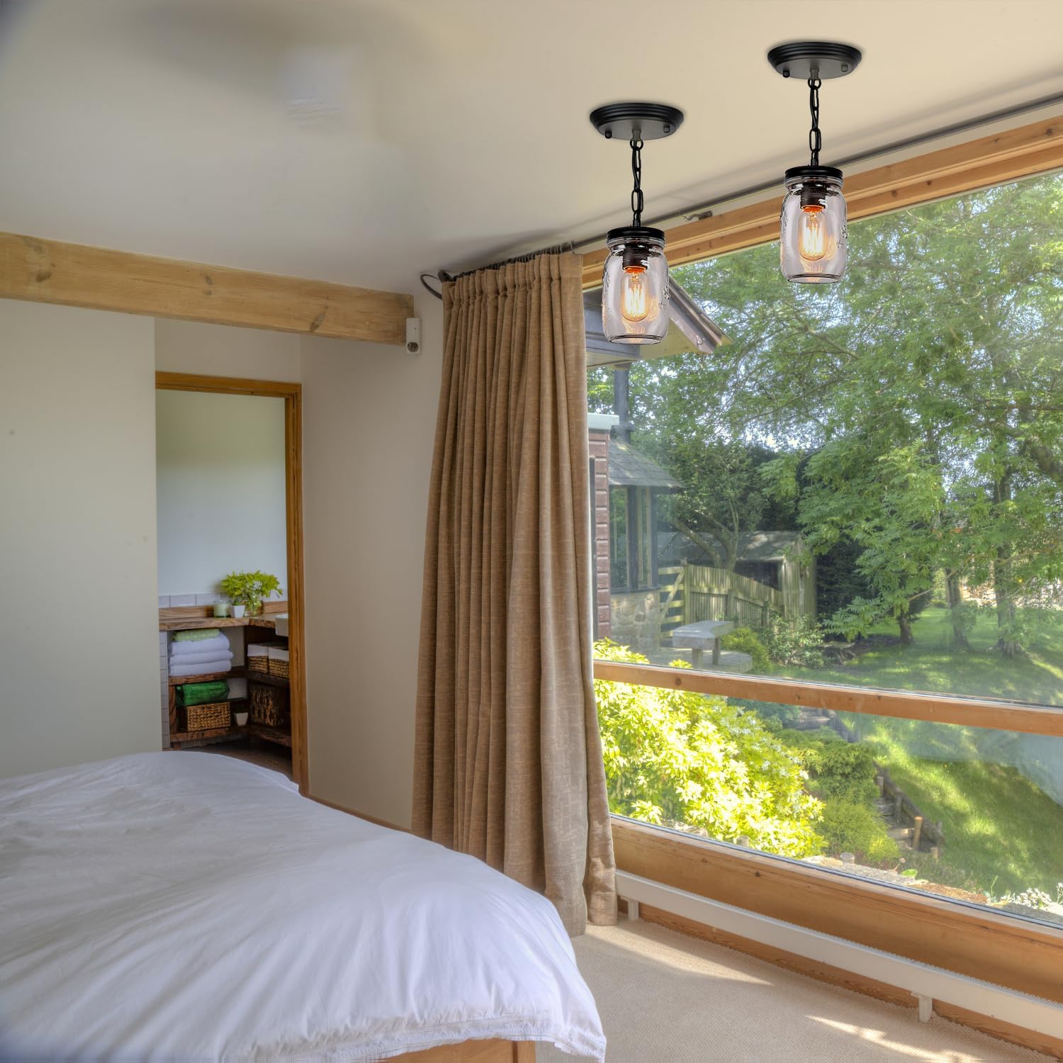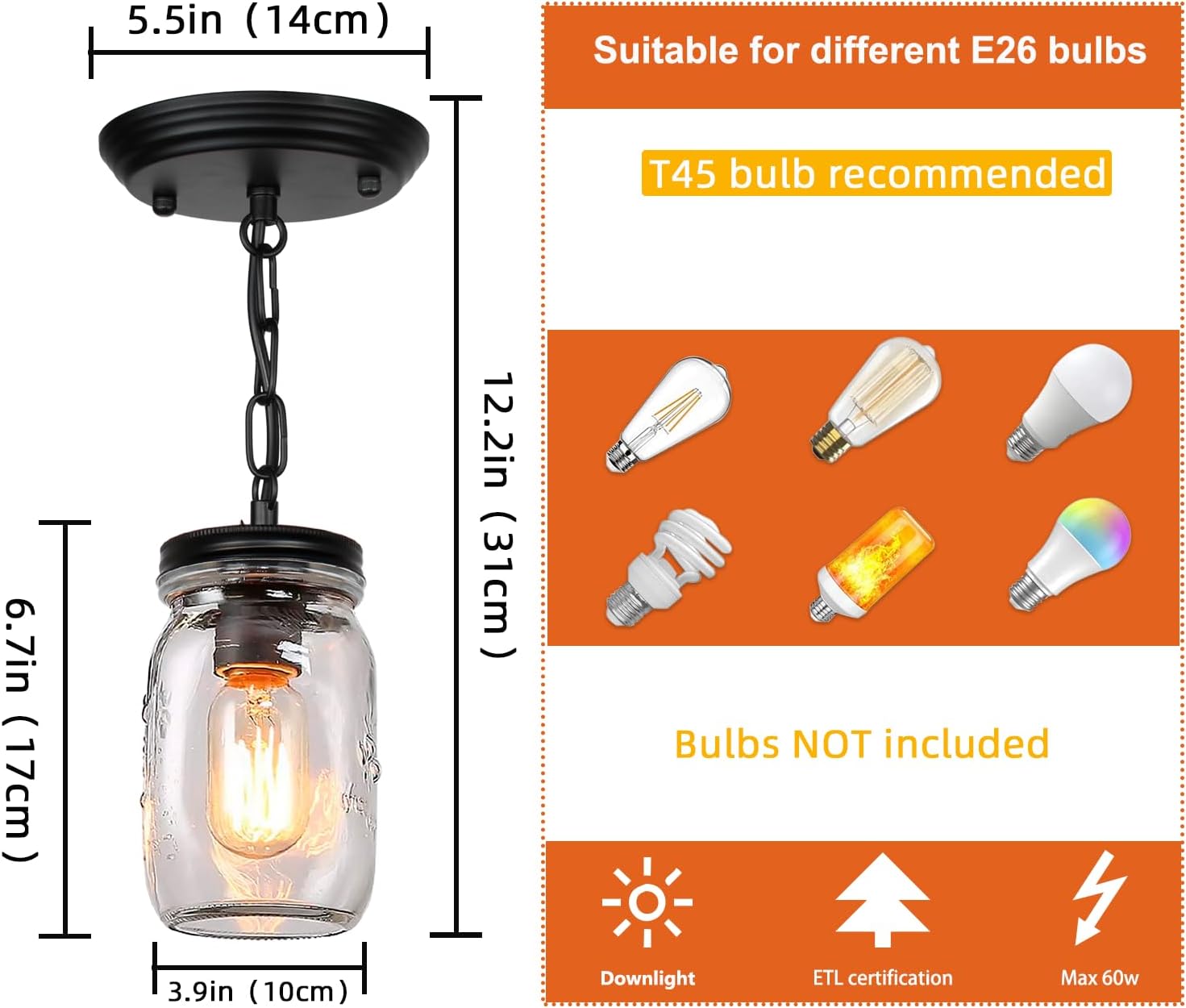 - 🔆Easy to assemble and install🔆 --This glass mason jar ceiling light for the kitchen island includes all the necessary parts for assembling and installation. With some experience and electrical knowledge, you can easily install it yourself in just a few minutes.
