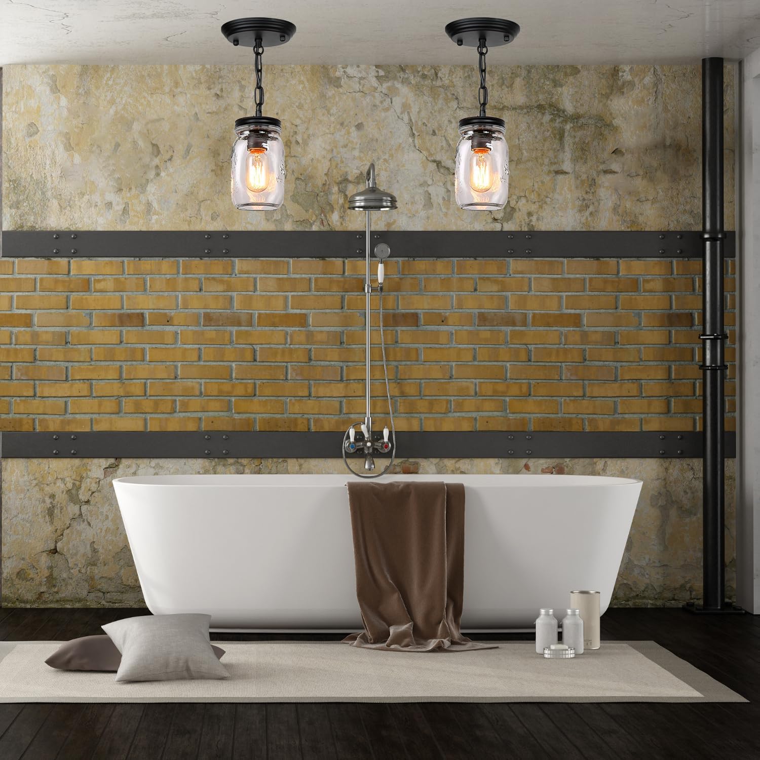 Glass Mason Jar Light Fixtures - Single Pendant Ceiling Light 1-Light Flush Mount - Black Country Farmhouse Lights for Kitchen Dining Room Foyer Stairway Hallway Entryway Porch
