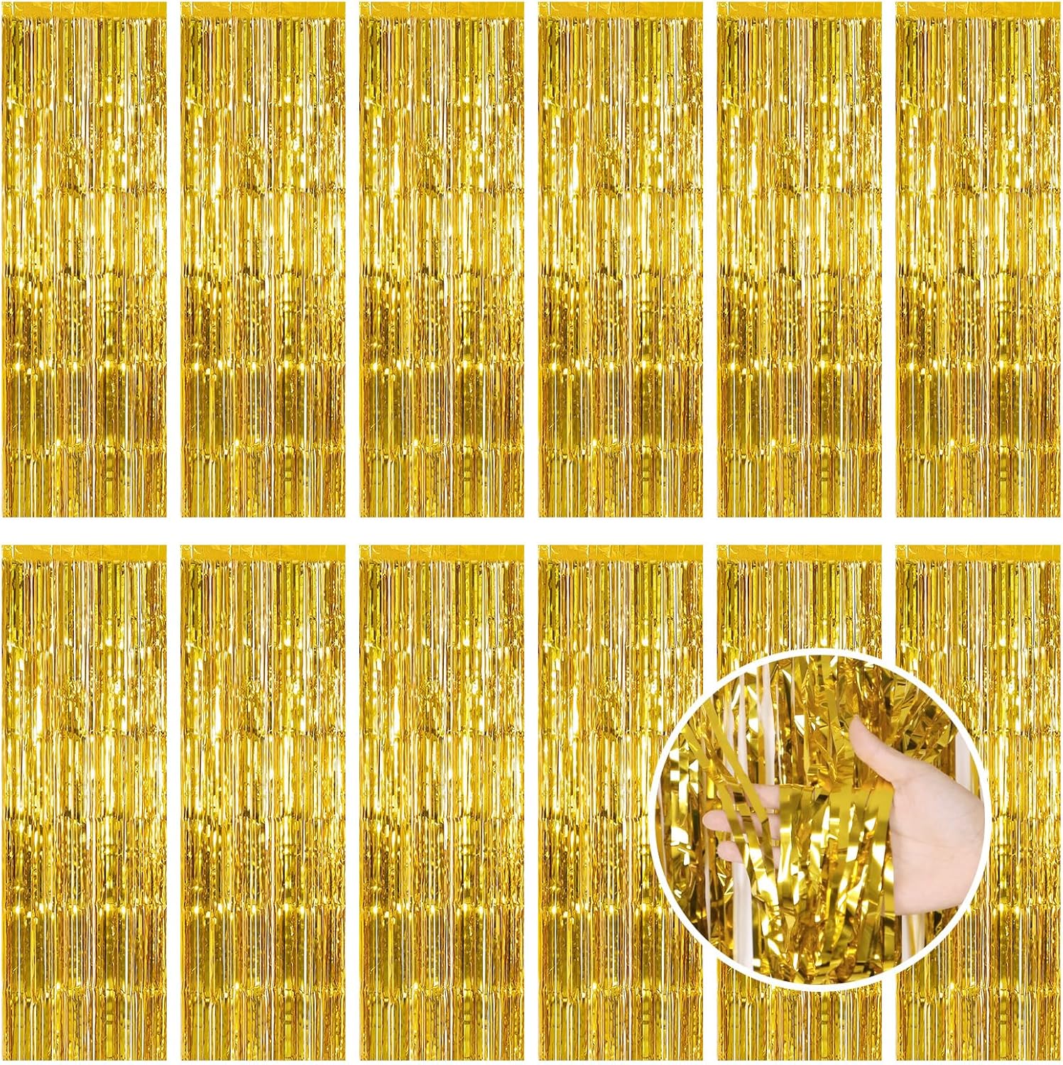 - 【Generous Quantity】Our party decoration supplies include 12 pieces of gold party streamers, the size of each gold foil curtain is 3.3ft x 8.2ft(1m x 2.5m). The extended length and rich quantity can help you create a sparkling party atmosphere and meet your various party decoration needs.