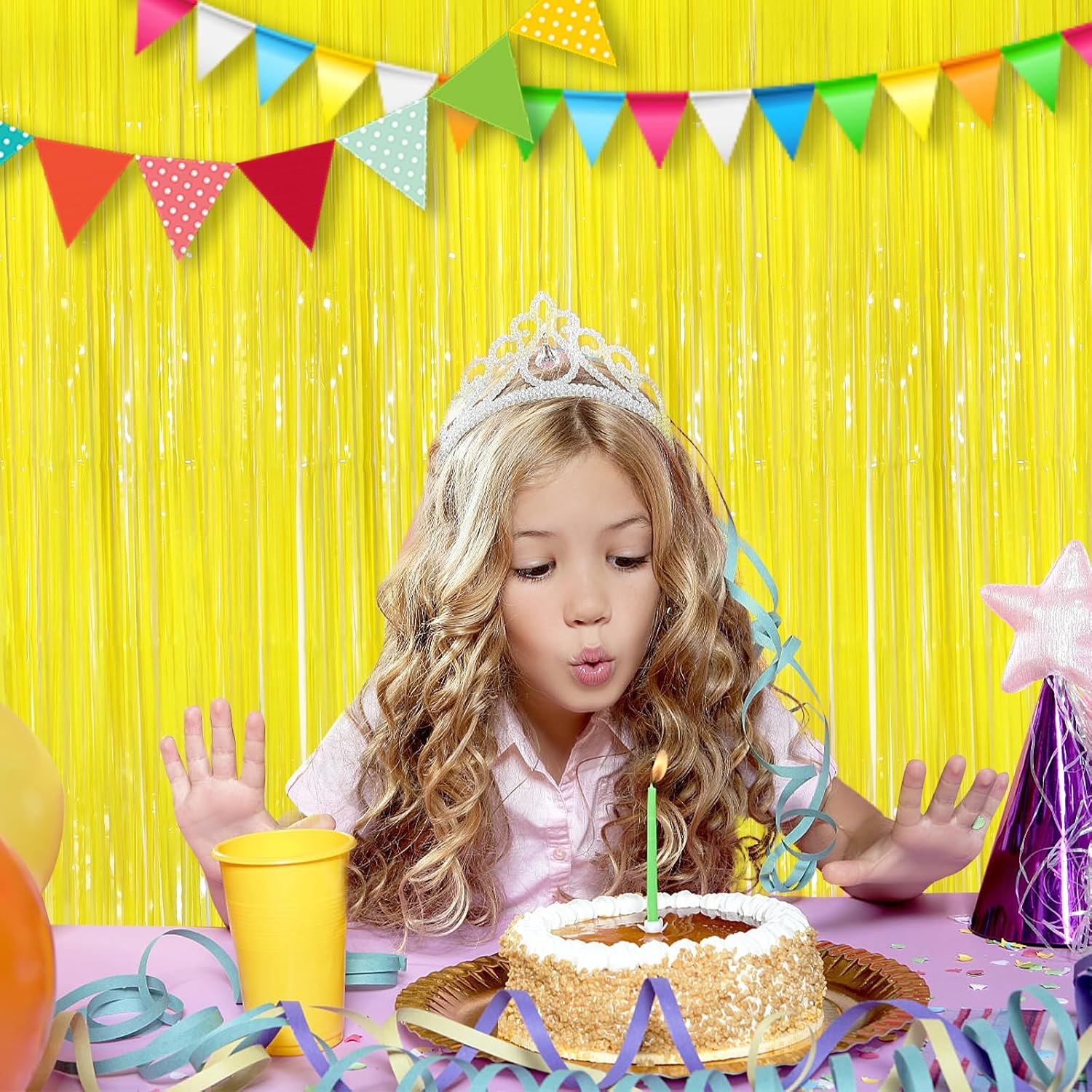 Macaron Yellow Metallic Tinsel Foil Fringe Curtains, 2Pack 3.3x8.3 Feet Streamer Backdrop Curtains for Birthday Wedding Party Decorations, Halloween Decor, Foil Curtain Backdrop for Bachelorette Party