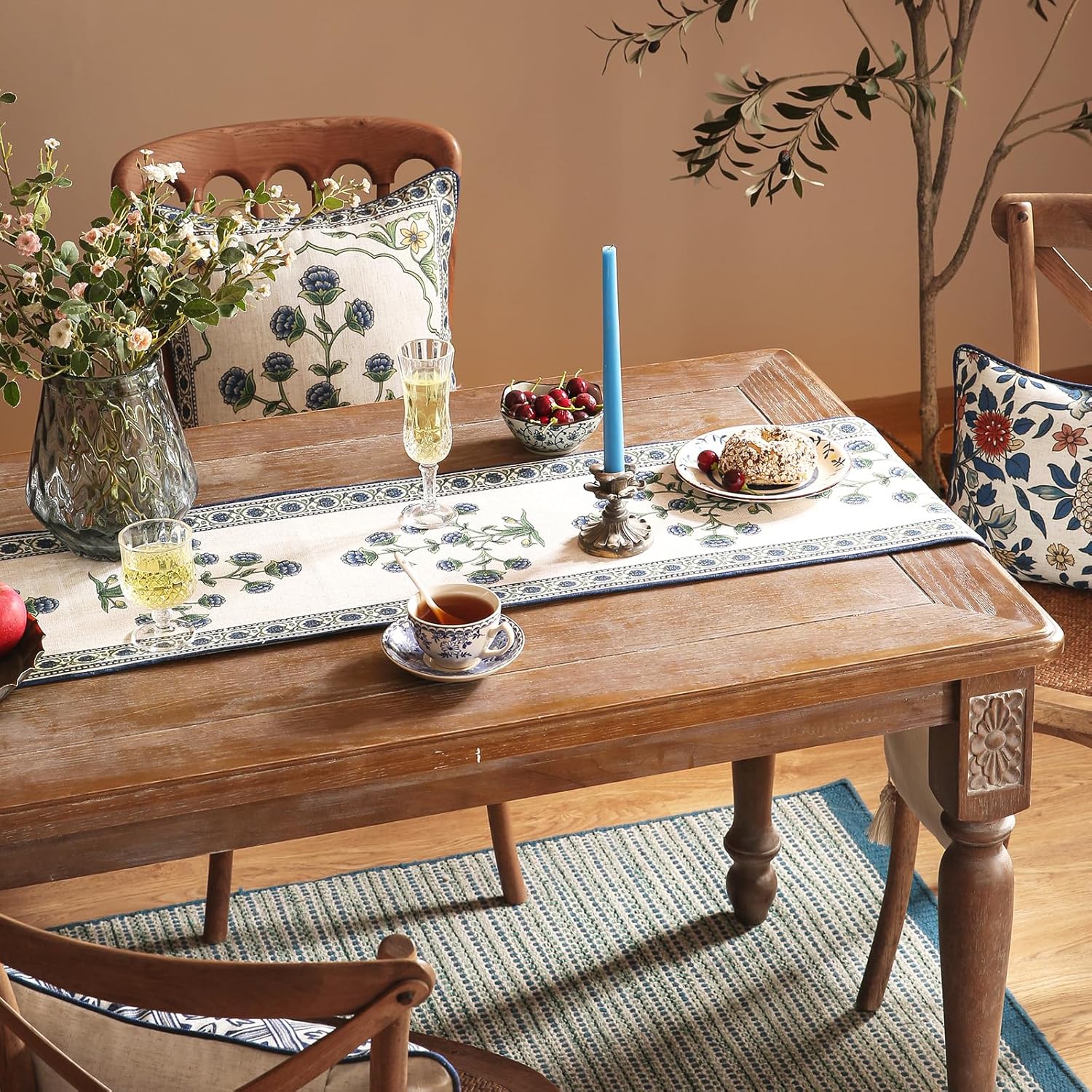 - Material: To ensure long-lasting color and minimal shrinkage, we have ditched the traditional all-linen process and instead used a new blend of 8% linen and 92% polyester. This innovative combination will provide you with a superior experience, making your table runner last longer and retaining its vibrant color.
