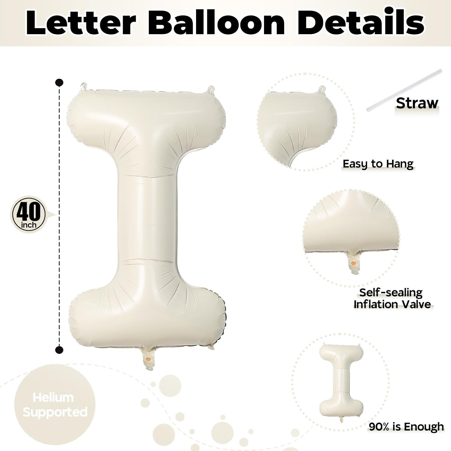 - π Easy Use: Large letter balloons beige have holes on the top to string together to hang in the wall. Can be deflated with a straw to facilitate repeated balloon use. The giant ivory white balloons can be easily combined with other alphabet balloons to form words or names, adding a unique touch to your celebrations, ideal for birthday party.