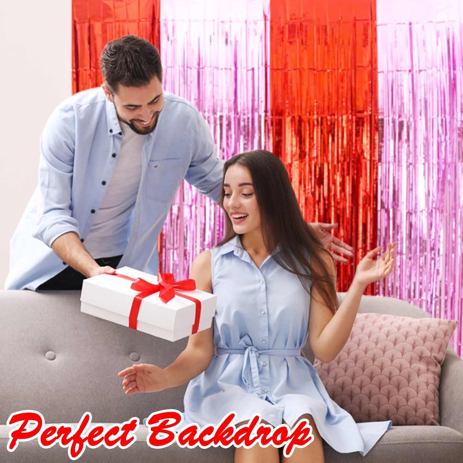 - SHINY PARTY BACKDROP: Our Red Pink metallic foil fringe curtains are made of tinsel material, ensuring long-lasting use. These tinsel foil fringe curtains serve as stunning Valentine's Day party, as well as photography curtains, creating a captivating atmosphere