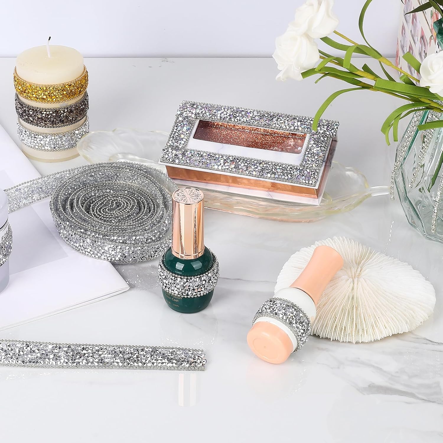 - Silver Rhinestone Ribbon: 1 roll of self-adhesive rhinestone ribbon Sticker, approx 3 yards in length, 1.5cm/0.6inch in width. (PACKAGE CONTENT)