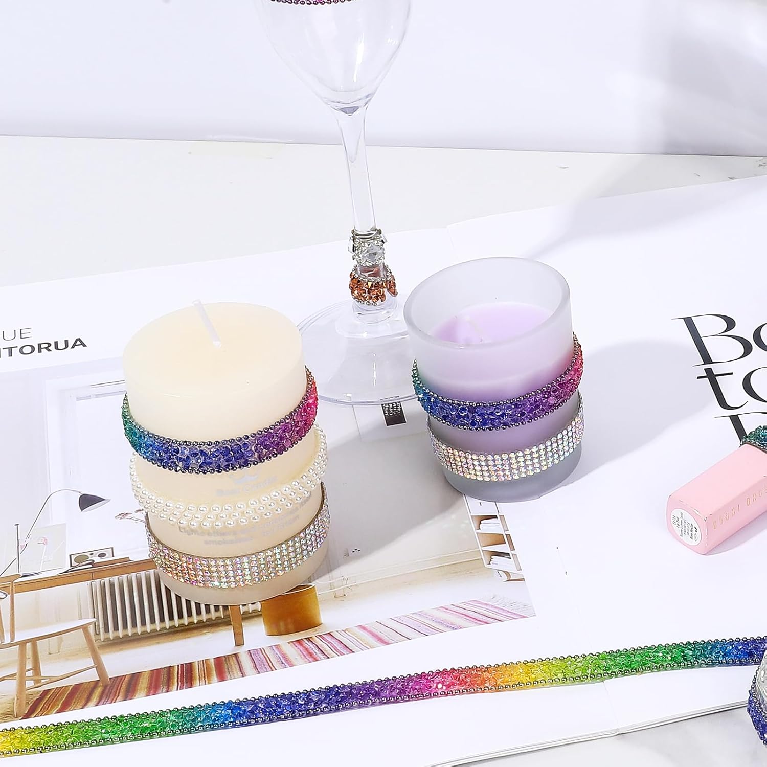 - Wide Applications: The bling rhinestone sticker strip is suitable for many DIY decorations, Rainbow sticker ribbon for accessories pride month decorations,mirrors, candles, vases, photo frames, costumes, home decor, offices, gardens, cars, personalized phone cases, jewelry boxes, and other places.