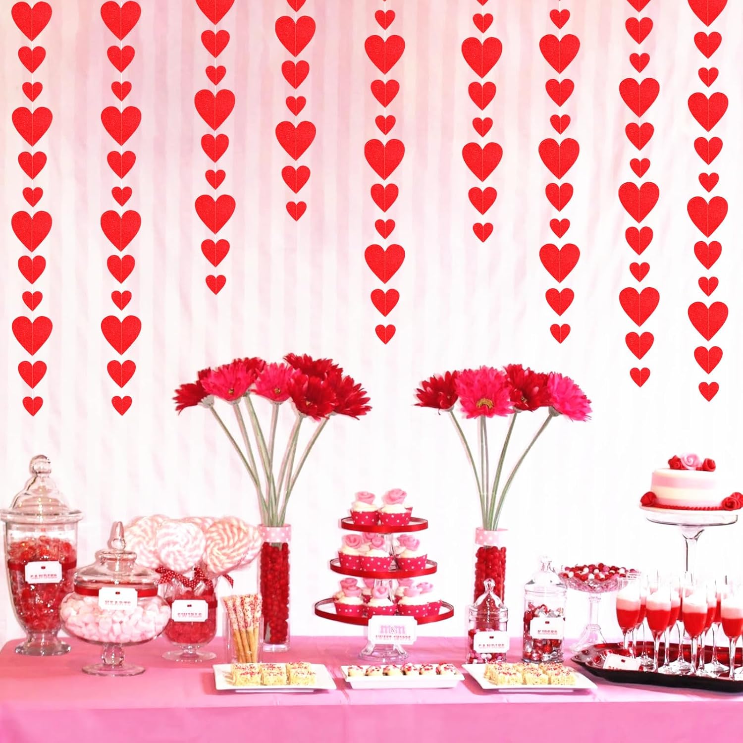 Party Decorations Red Heart-Garland - 52ft Special Night Galentines Hanging Streamers Banner,Girl Romantic Wedding Anniversary Baby Bridal Shower Engagement Mohters Decor Panduola