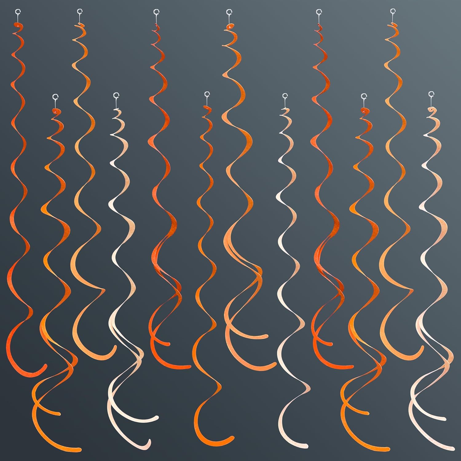 - 🧡Package Contains - 36 packs of orange ombre color swirl party streamer,Each swirl can extends to approximately about 2.62 feet long,Meeting daily general needs.Comes with 40 plastic hooks for hanging.