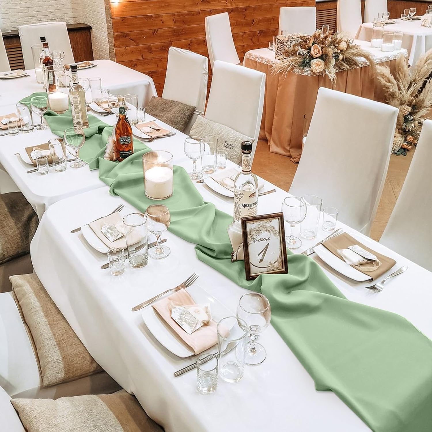 10 Pack 10ft Sage Green Chiffon Table Runners Wedding Table Runner Sheer Romantic Tulle Table Runner for Christmas Wedding Bridal Tea Party Baby Shower Birthday Party Table Decorations(120 x 12 in)